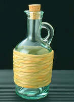 Oil and vinegar bottle available in a traditional jug shape. The jug comes wrapped with raffia for an old world feel. Every bottle pours easily and is sure to be a great buy for every household.