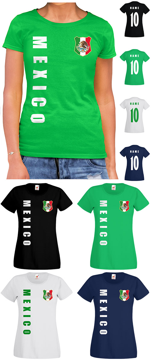 Mexiko Damen T-Shirt Trikot mit Wunschnamen und Rückennummer. Ideal als Geschenk!