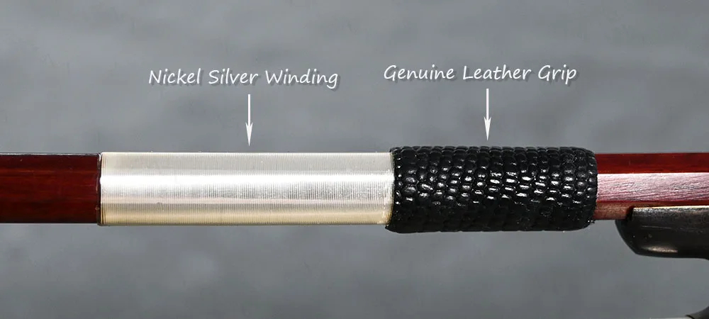 bow has a round stick which is made of dark brown pernambuco. The model