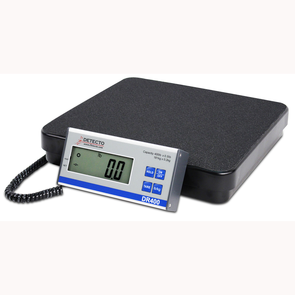 Accurate and reliable, Detecto's economical general purpose DR400 scale quickly pays for itself when used for receiving goods by weight. The remote indicator easily mounts on table or wall and features large / 25 mm display, units conversion and tare. Battery powered, the scale is portable so you can have scale anywhere you need it. The scale also features RS-232 serial output. The DR400 has capacity of 400 lb x.5lb / 181 kg.2 kg.