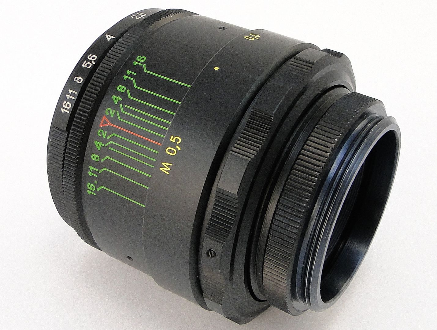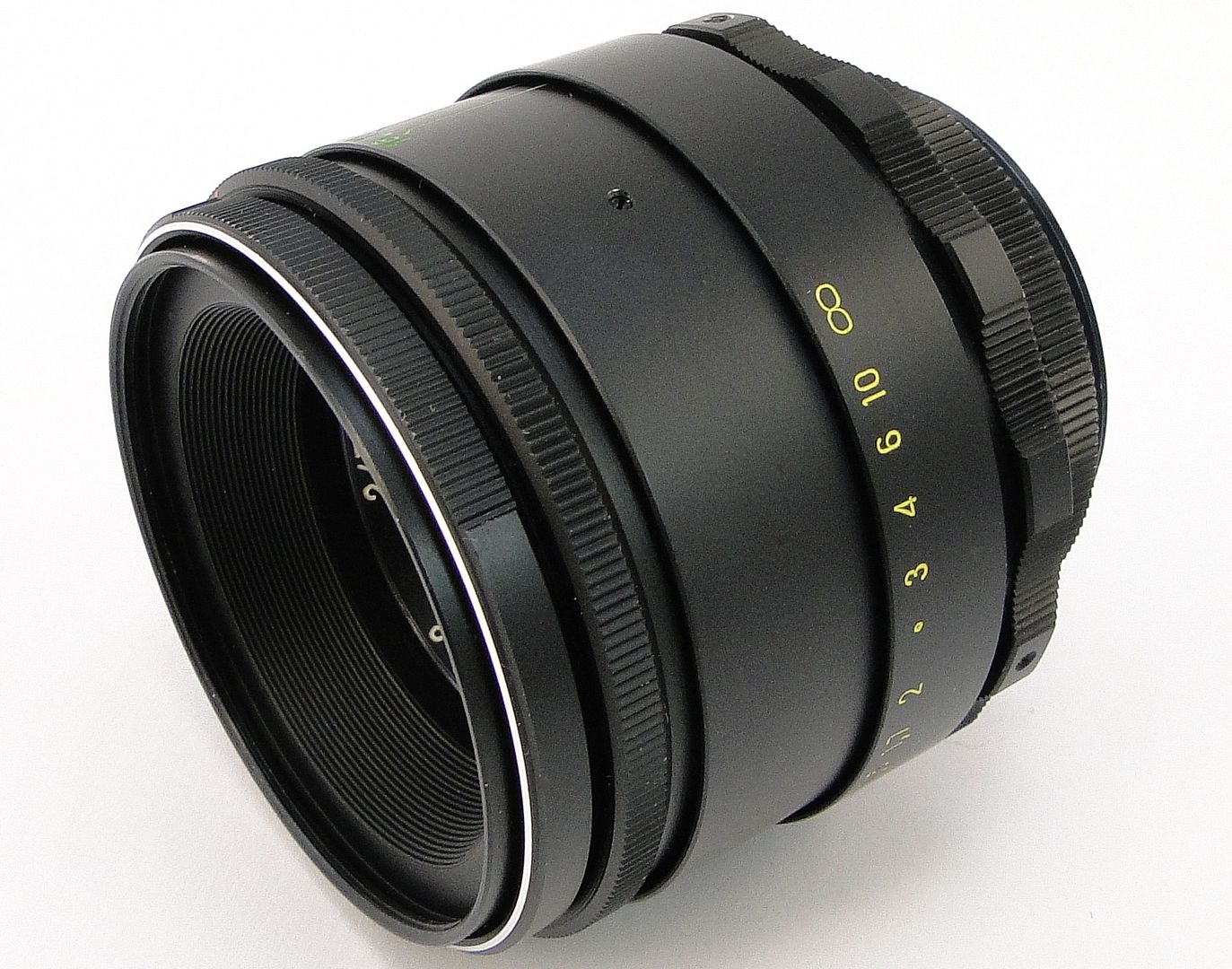 Lens mount: M42 Focal length: 58mm Relative aperture: 1:2 Scale of diaphragms: from 2 to 16 Diaphragm: Manual Focusing range: from 0.5m to infinity Filter mount: M49x0.75 |