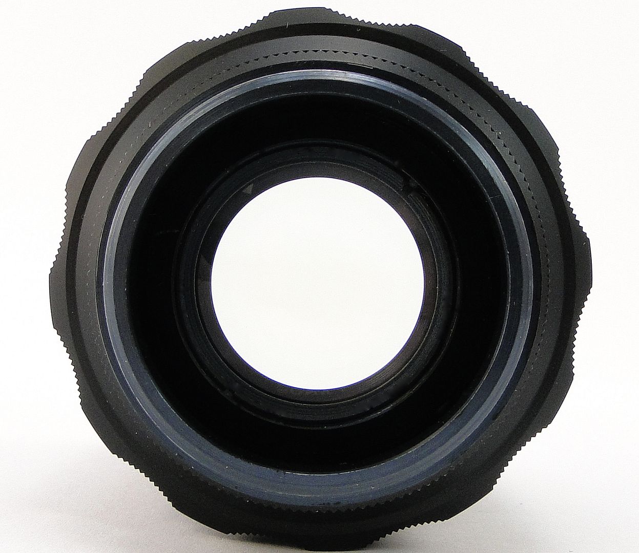 Glass is clean and clear, no scratches, no dust inside, no fungus. The iris blades is free of oil (it is very important for all lenses - the blades must be free of oil). The diaphragm-control ring turns smoothly and accurate. The focusing is smooth and precise. P.S. The iris blades must be absolutely free of oil, not acceptable even a little oil because this - "a little oil" will be on glass inside of a lens on a sunny day.
