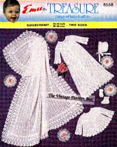 Gorgeous lacy christening set is for - dress,jacket,bootees,bonnet & shawl (42" square) for chest sizes 18" & 19" (46cm & 48cm).