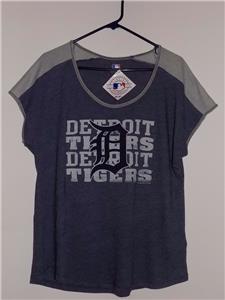 DescriptionNew with tags Deroit Tigers women's scoop neck navy heather & steel t-shirt. Representing your team should be done with as much style as possible. Choosing this superior loose fit shirt will assure you get noticed. Featuring quality screen printed team graphics, a beautiful heather tri-blend fabric, a scoop neck, contrast piecing at shoulders, and a rounded bottom hem. This fashionable shirt is very soft, lightweight and well worth the addition to your team inspired gear.