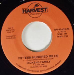 Dickens Family, Fifteen Hundred Miles (same both sides), Harvest Records HAR-45-32191.