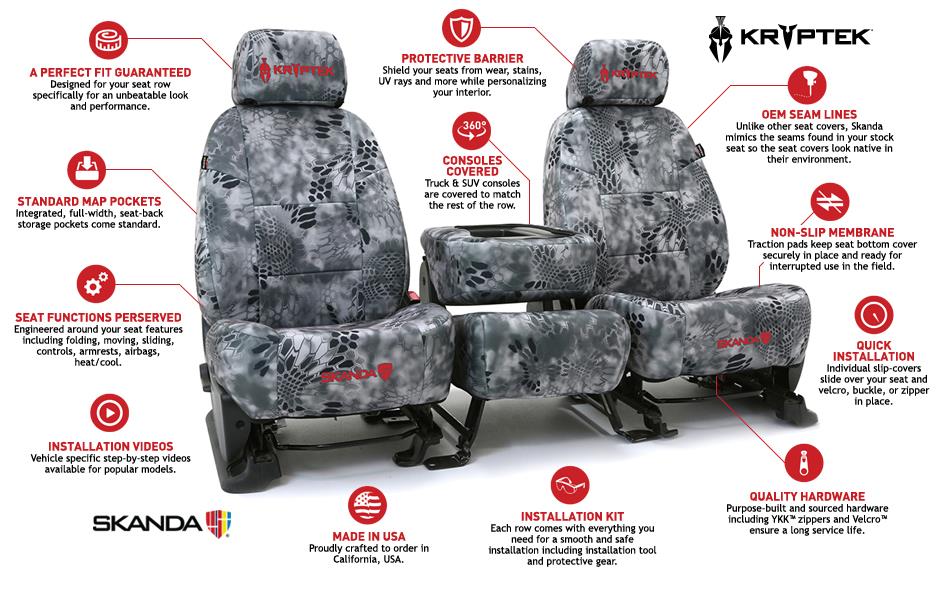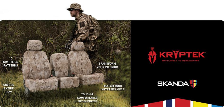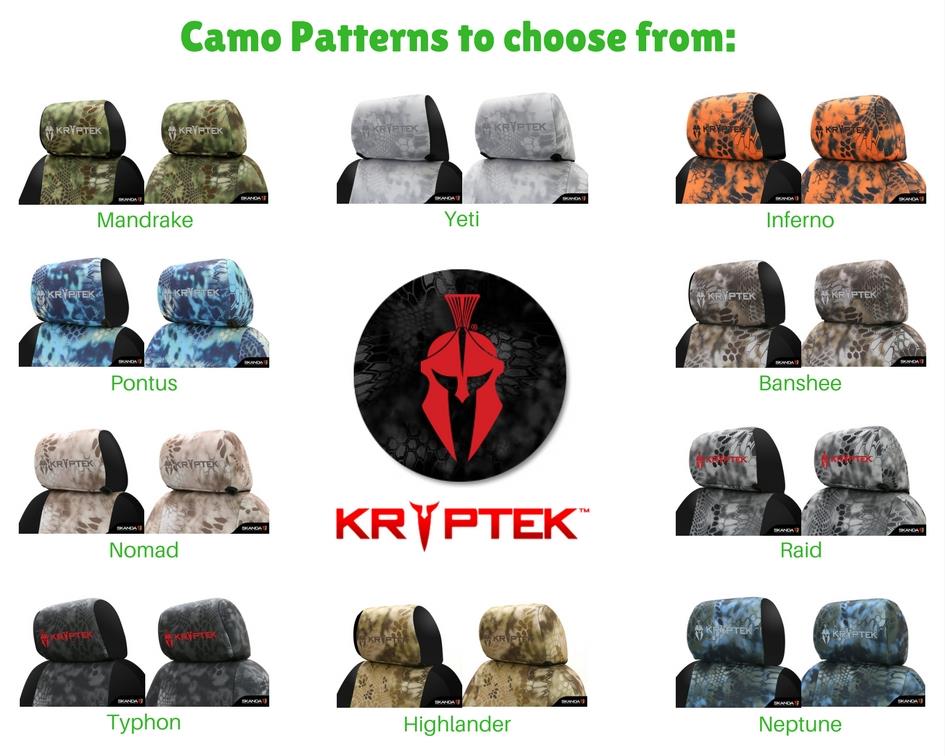 Kryptek® seat covers are made for the unflinching, untamed and the uncommon and stirred by nature and its habits, by veterans with the intrigue of active duty, by the hunters and sportsmen. Not for the faint of heart, but for those that seek adventure and stay completely active. Introducing Skanda – inspired style camo covers that truly stand out.
