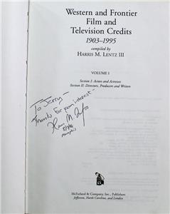 | Western and Frontier Film and Television Credits 1903-1995 Vol. 1 by Harris M. Lentz III 1996 Signed Copy Large hardcover book 1996 McFarland Co. first edition. Volume one only covering actors, actresses, directors, producers and writers. Inscribed and signed by author on title page. Book is in very good condition. Boards show light shelf wear, some light soiling on text block edges. Book is complete and tight. No markings. still-relevant BK00090019 ISBN ... 9780786402175 Shipping information: All books are placed in a poly bag to protect from moisture. Your book will be shipped in either a padded poly envelope ( with cardboard cover to protect against damage) or a box. Media mail is offered for economy but it's delivery time projections have become unreliable. If you choose media mail shipping please be aware that your shipment may experience delays. If your book weighs 10oz or less then I generally upgrade media mail to first class at no additional cost. Priority mail service is also offered as a quick and reliable option but at greater expense.. |