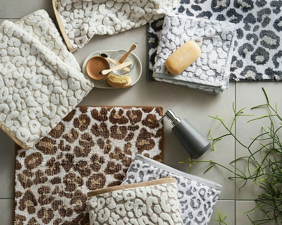 These patterned bath mats, featuring a stunning Leopard Jacquard design, are guaranteed to add a touch of luxury to any bathroom.