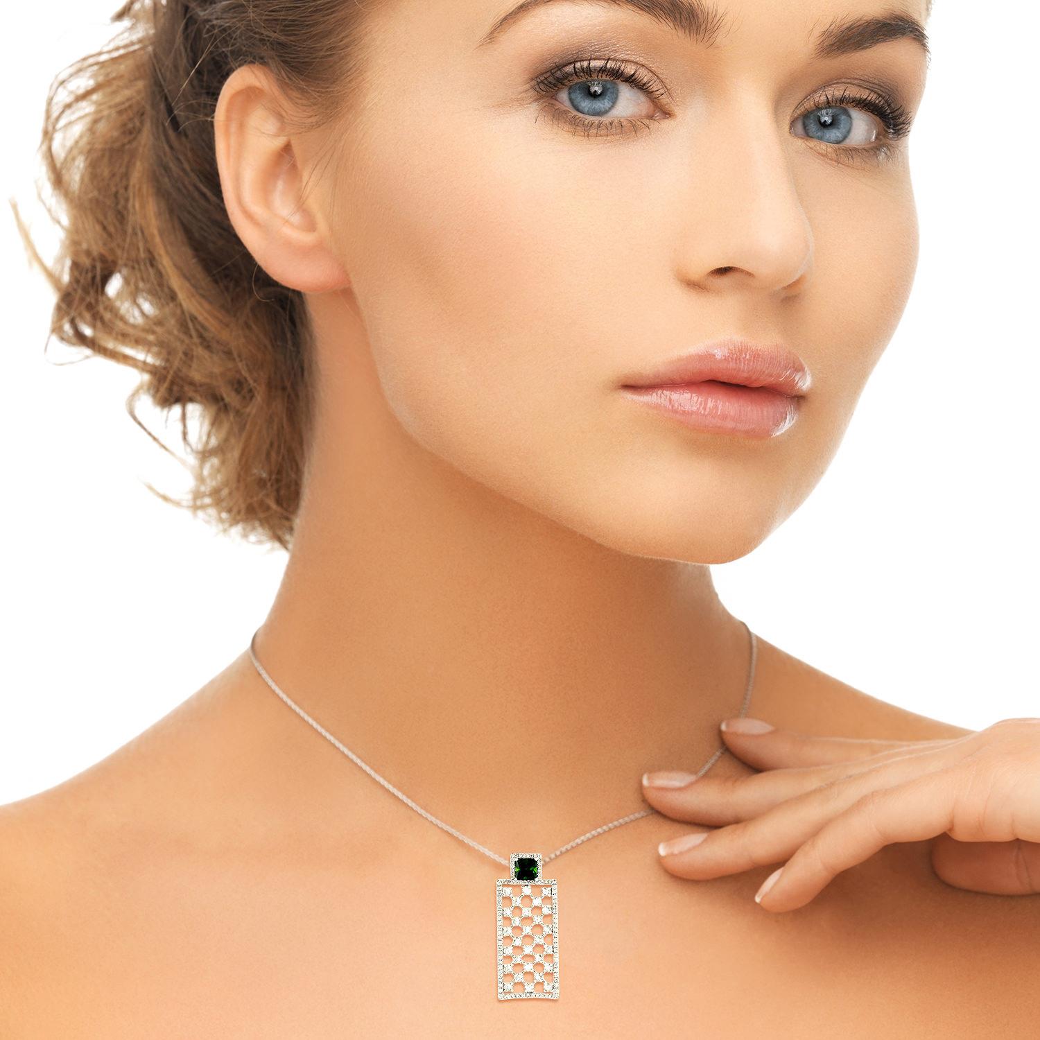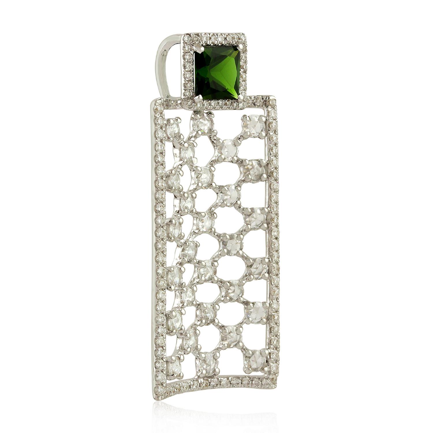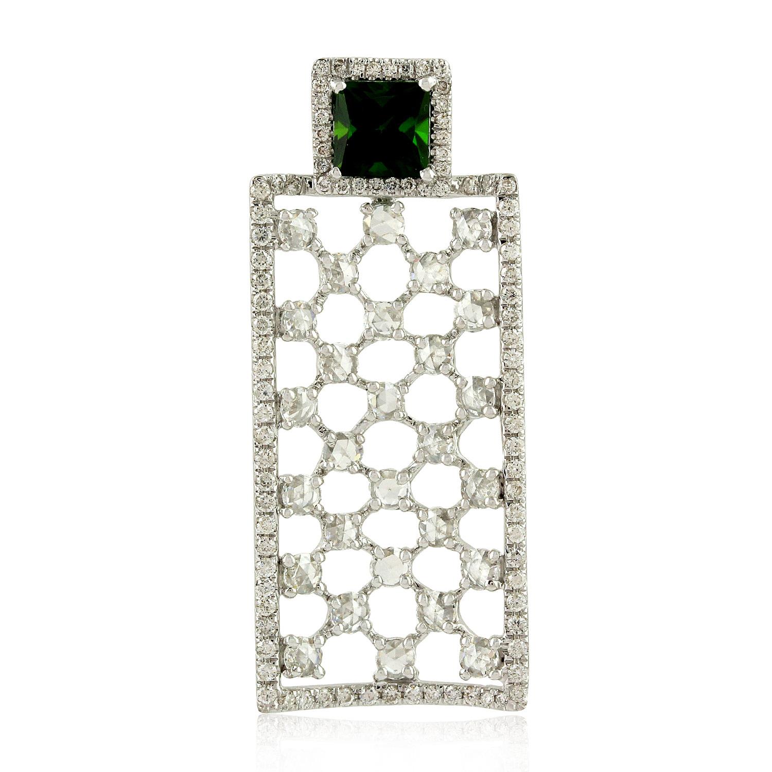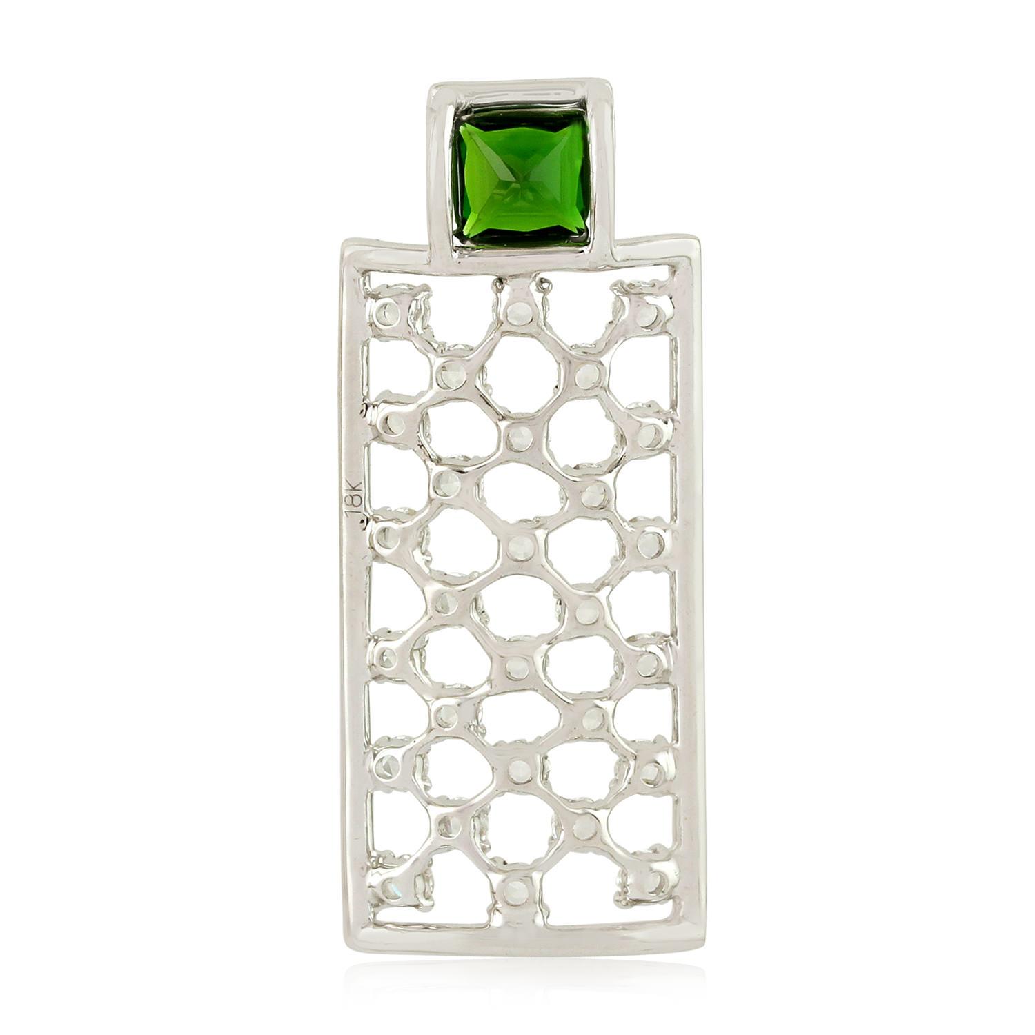 Natural Chrome Diopside Diamond Pendant Necklace 18k White Gold Designer Jewelry