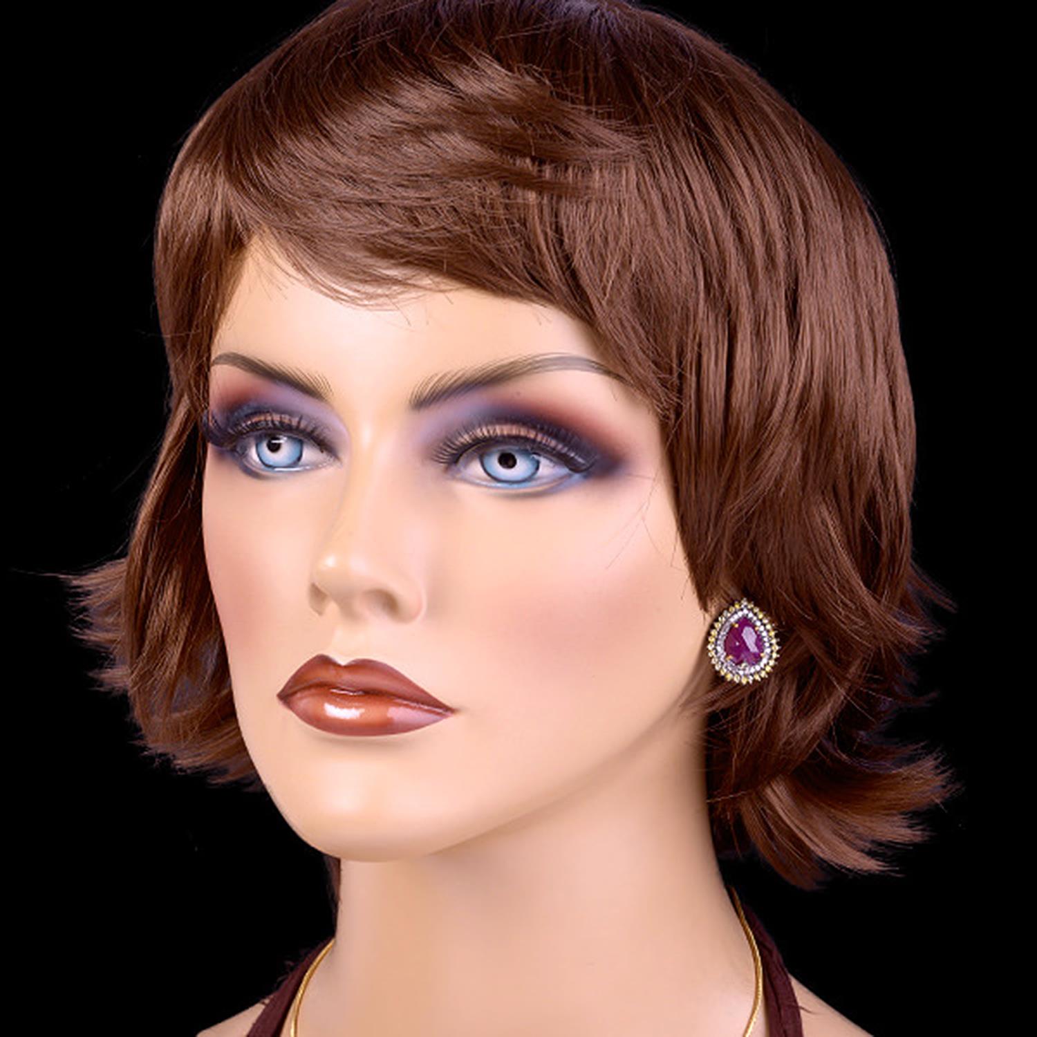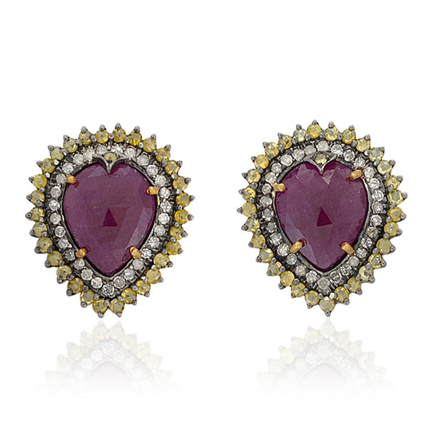 18k Gold Ruby Gemstone Single Cut Diamond Stud Earrings Sterling Silver Jewelry