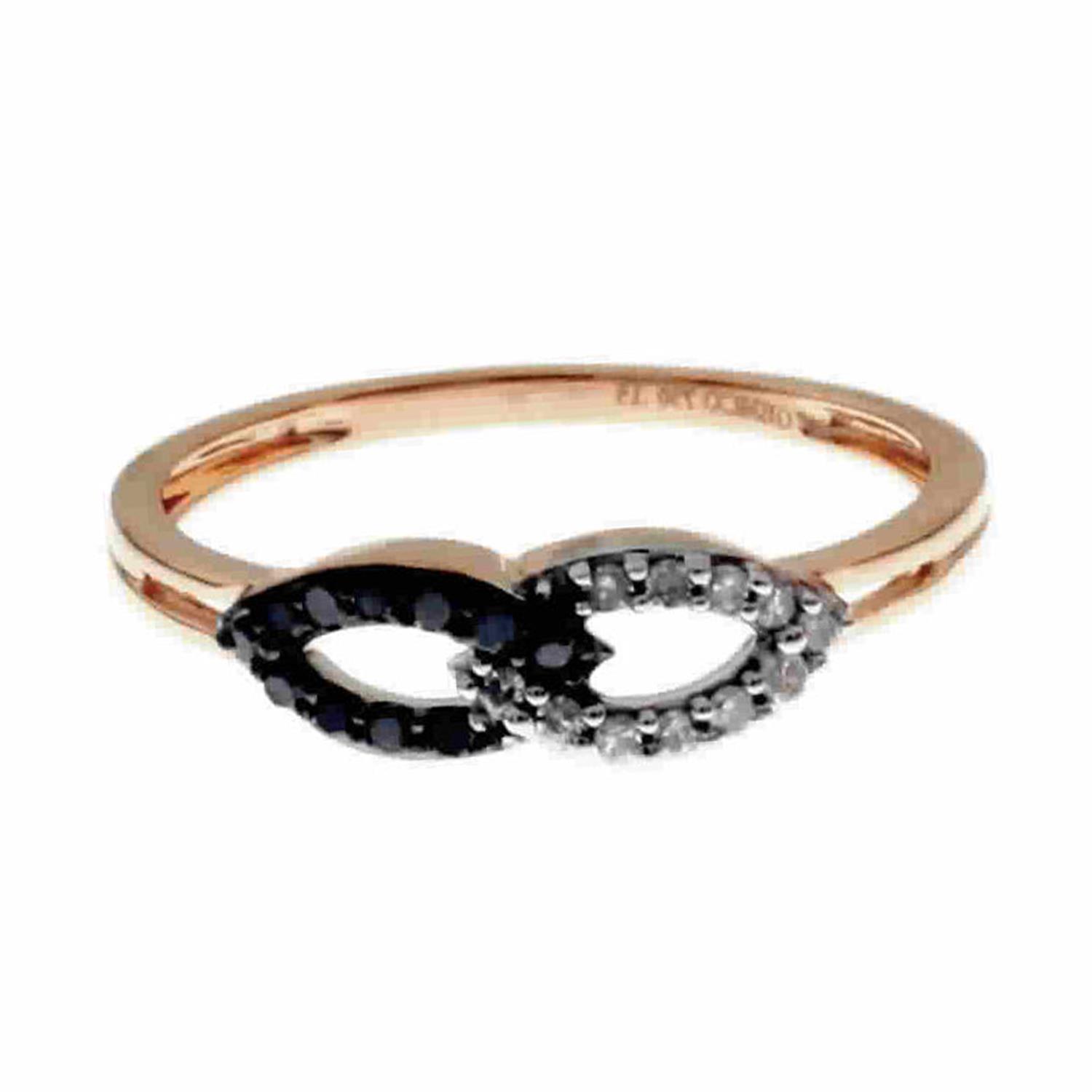 18k Rose Gold Genuine Black & White Diamond Interlock Ring