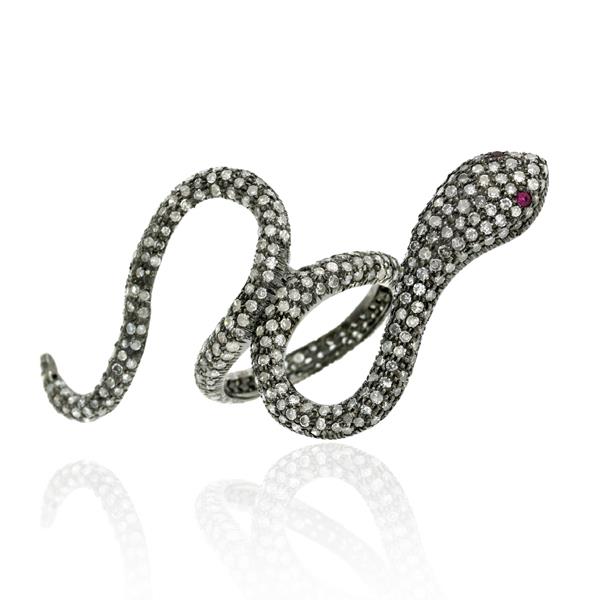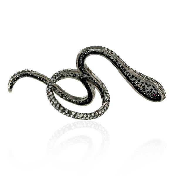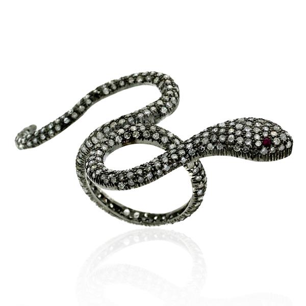 925 Sterling Silver Ruby Handmade Wrap Snake Knuckle Ring Pave Diamond Jewelry