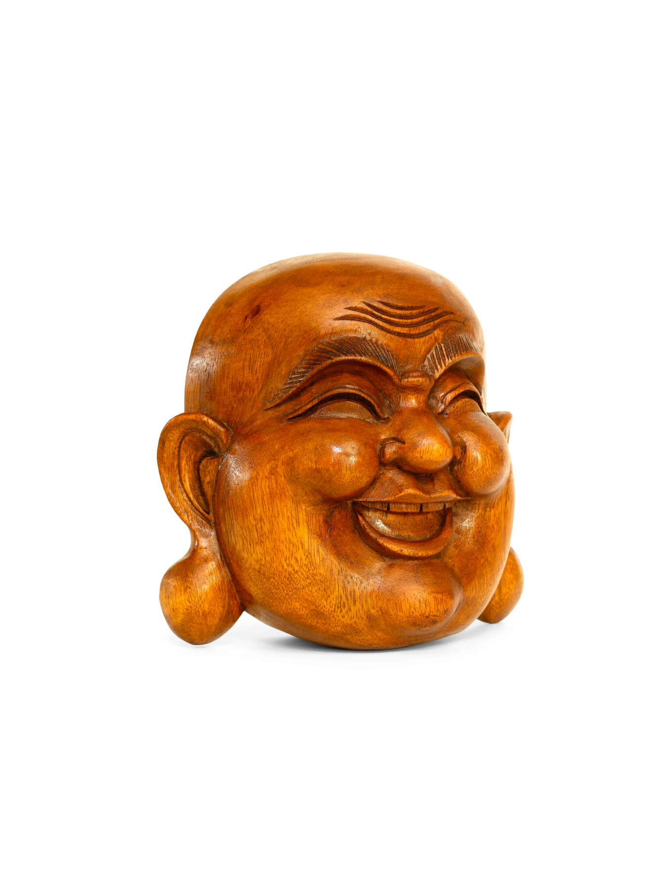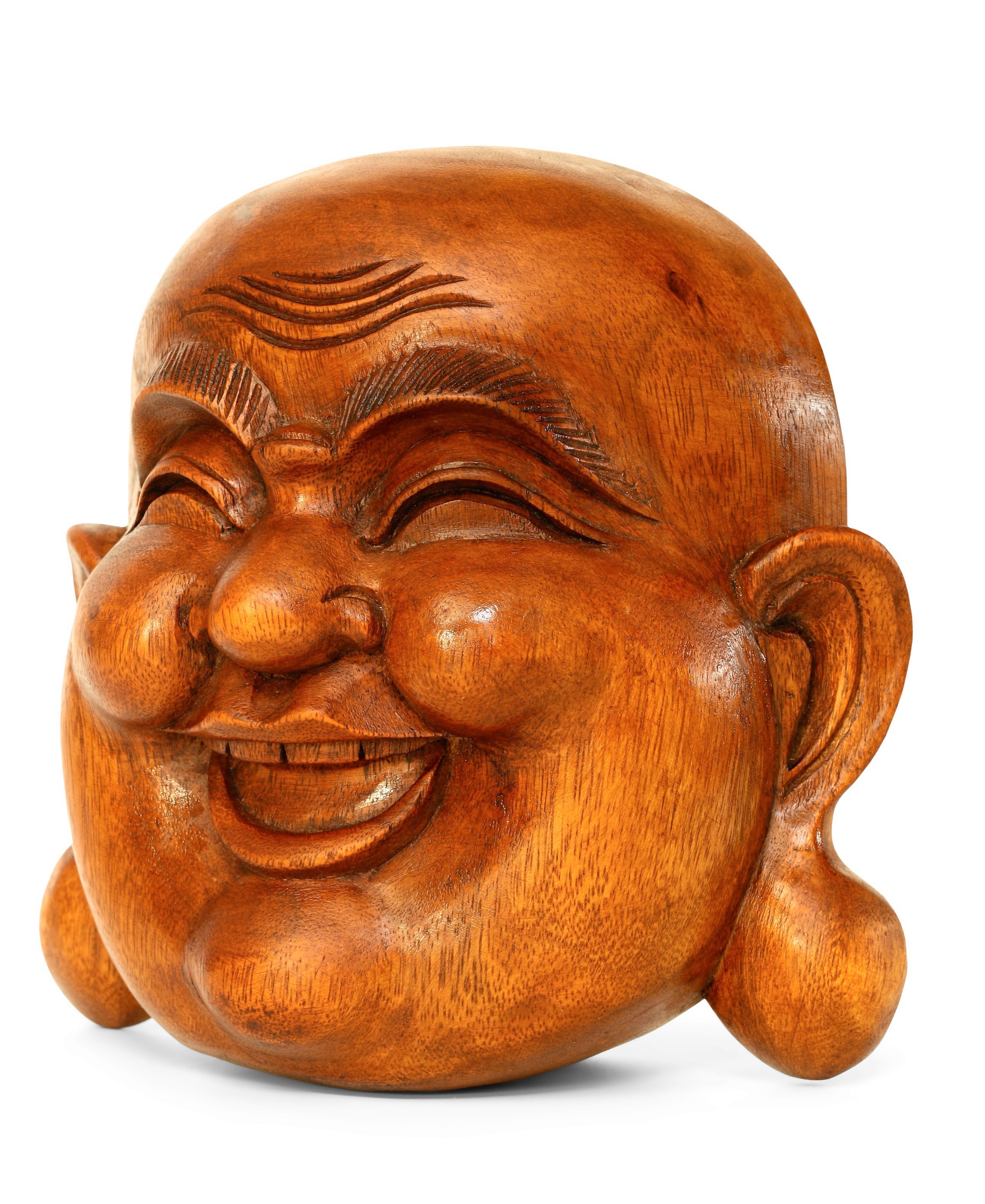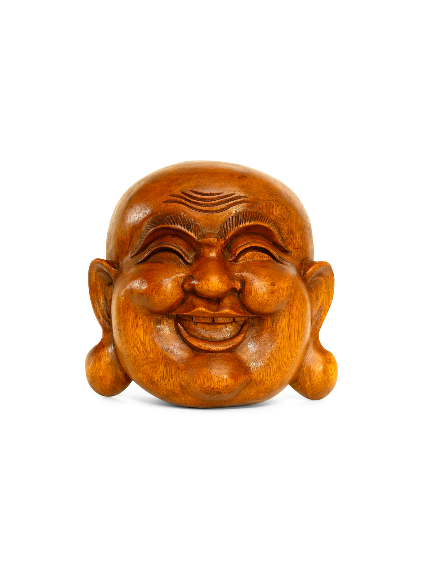 This wonderfully crafted happy Buddha mask will make a great addition to your home. Based on Budai, the Chinese inspired mask is a symbol of wealth, happiness, and generosity. Legend says he was a monk that gave treats to children and also protected them from harm. Its larger size of 9" tall x 8" wide showcases the details and characteristics of the wood bringing out the beautiful highlights in each carving. It can be hung on a wall or rested on a surface. The Happy Buddha wooden mask makes a great gift for friends and family.