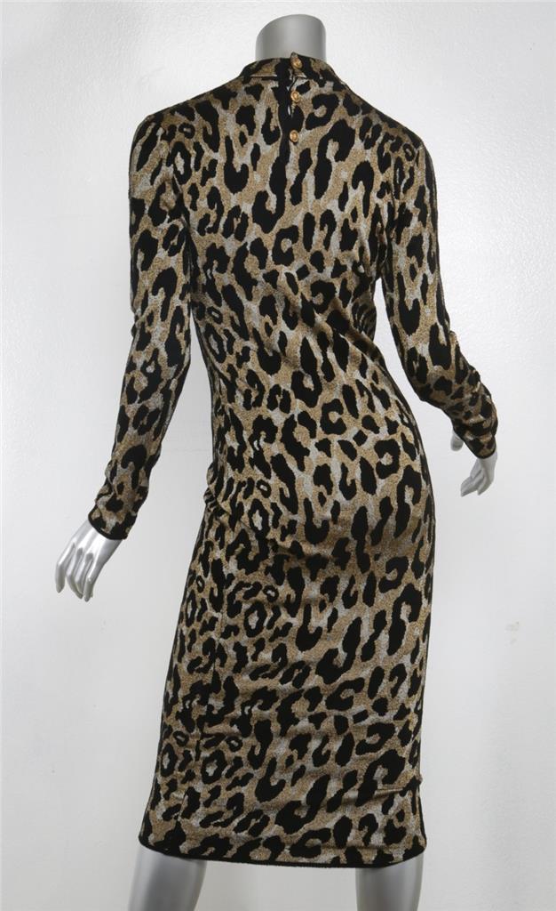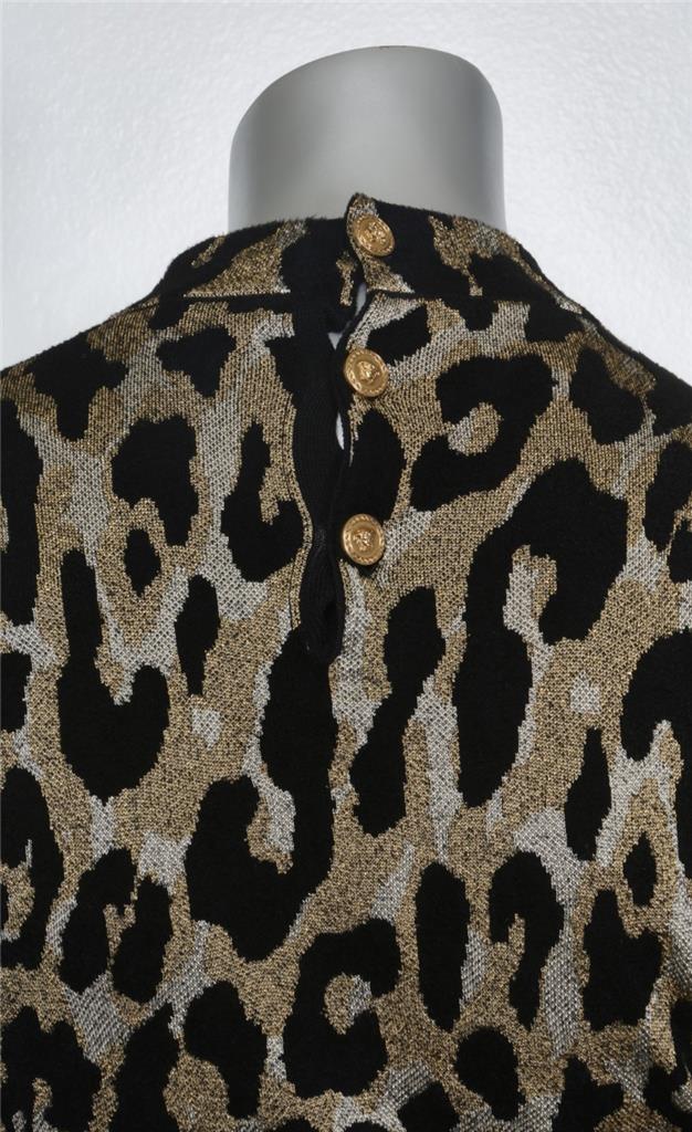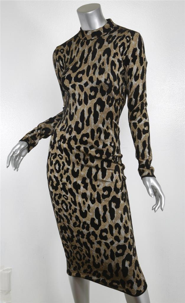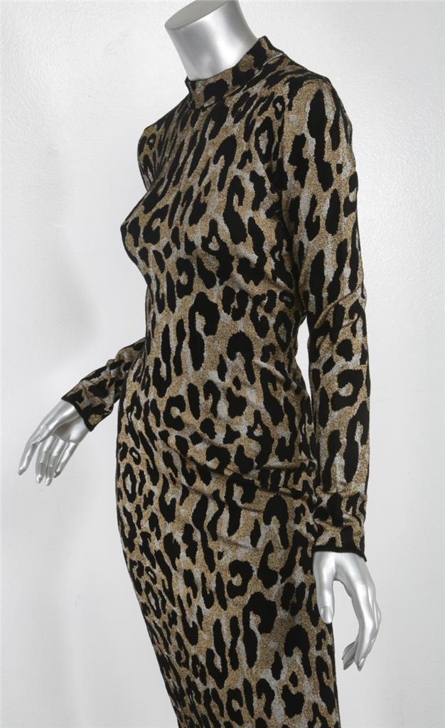 VERSACE Womens Metallic Leopard Animal Print Long Sleeve Midi Dress IT38 US2 NEW