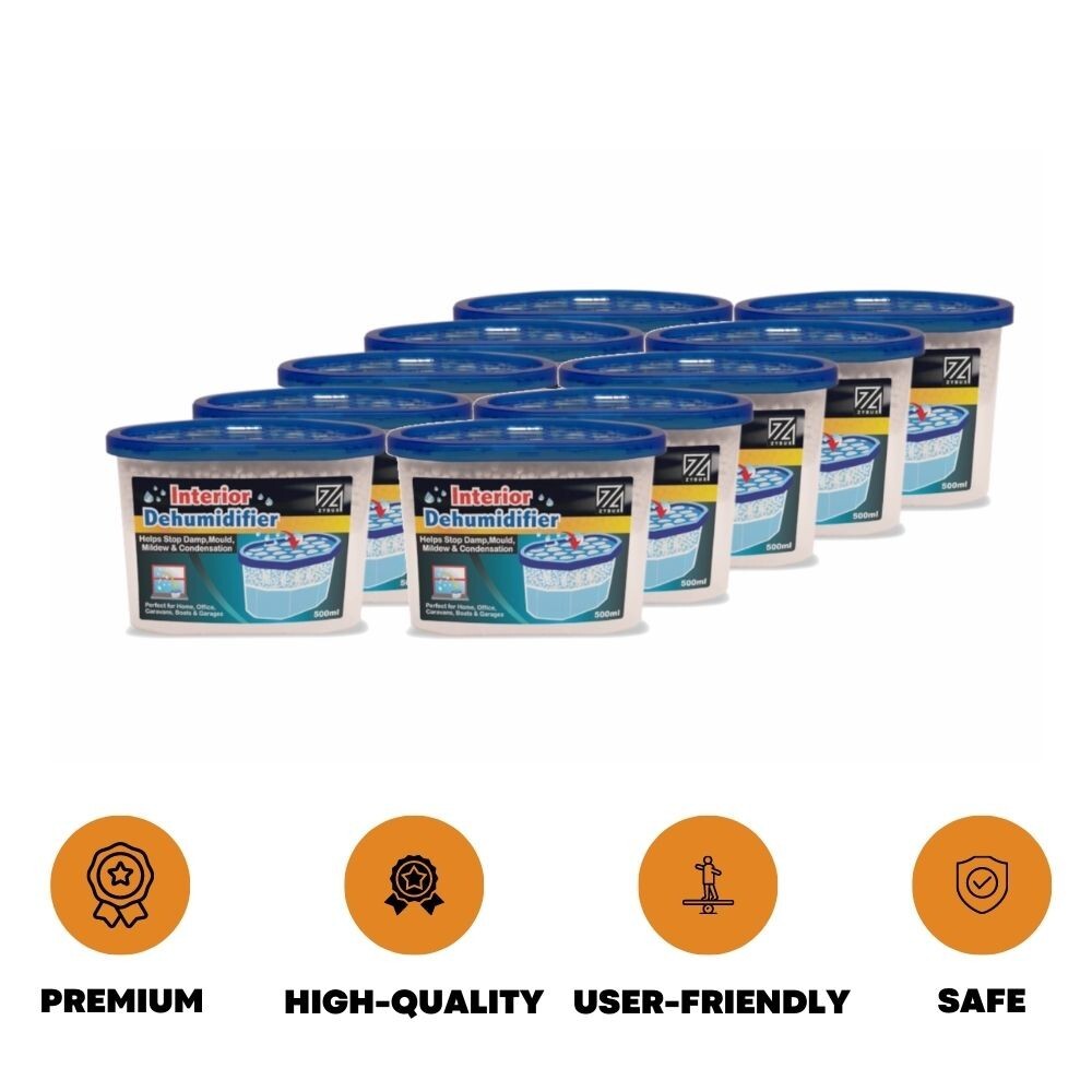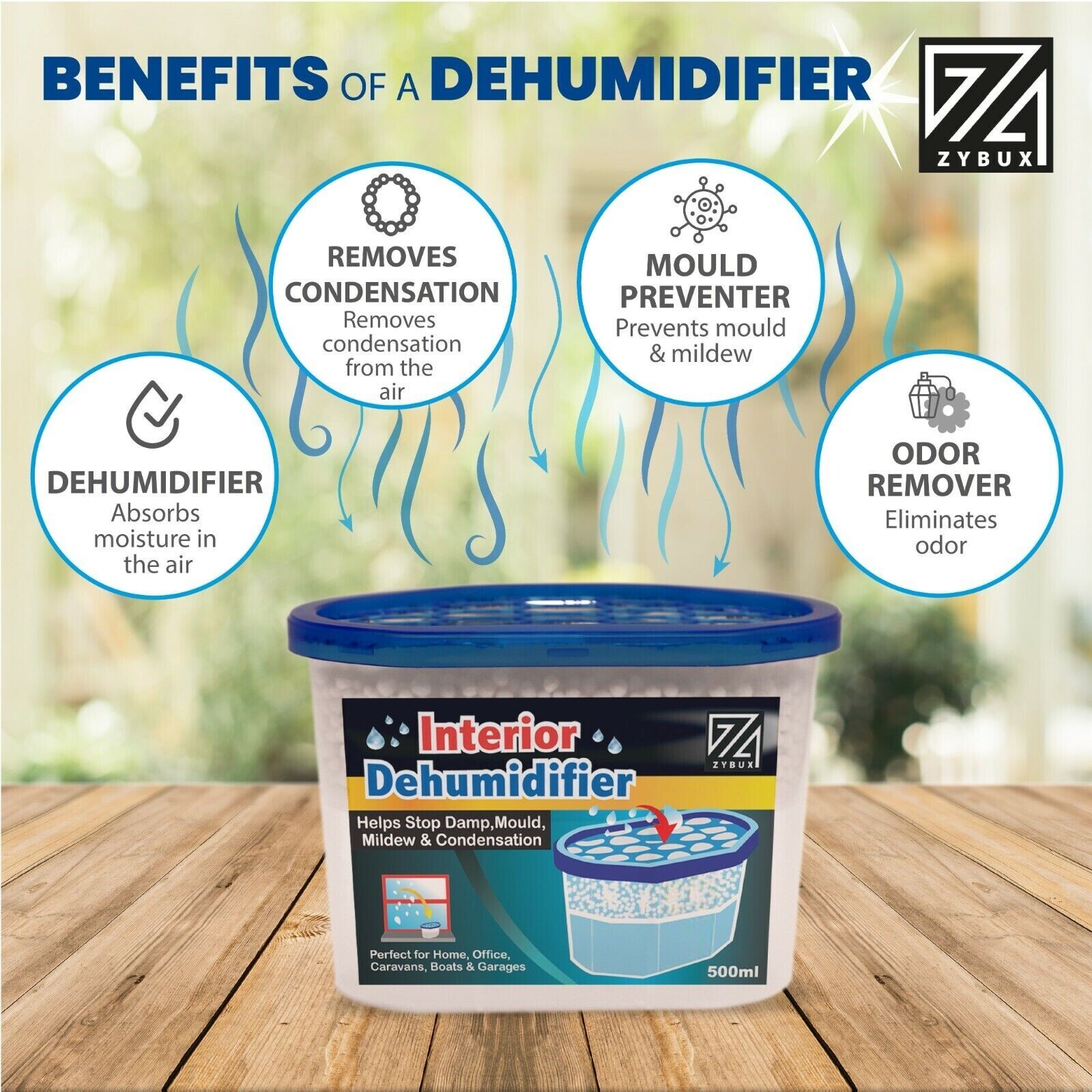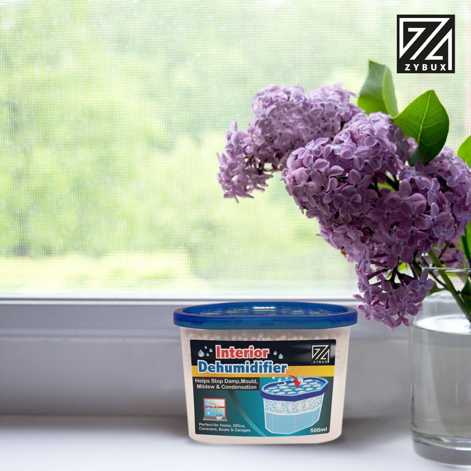 Our premium quality Interior Dehumidifier Condensation Remover is here to make your life easy and hassle-free. Now you donβt have to worry about getting your things damaged by high humidity! Our interior dehumidifier helps to remove humidity from humid places and reduces mold and dust mites. The unique granular agent formula draws in excess moisture from the air to prevent damage to your valuable things. Our advanced condensation remover aids in decreasing the chance of condensation, mildew, and mould in the air. The odorless dehumidifier can absorb and hold water up to 3 times its weight. This is very useful for places like the bathroom, kitchen, garage, basements, and other places that deal with excess moisture. We advise you to keep the dehumidifier on a flat surface and out of the reach of children.