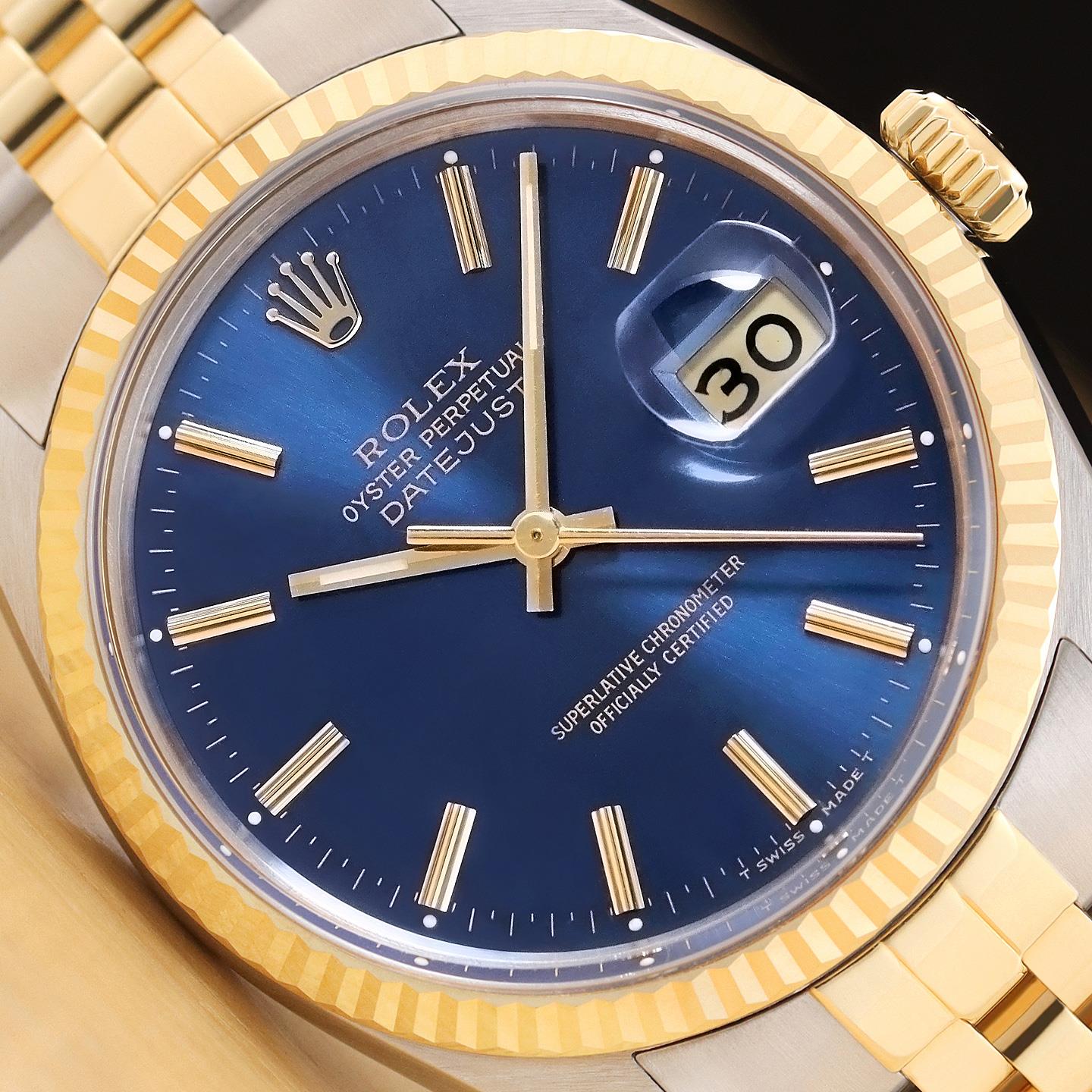 ROLEX MENS DATEJUST 16013 BLUE TWO-TONE 18K GOLD STEEL WATCH w/ ROLEX BAND