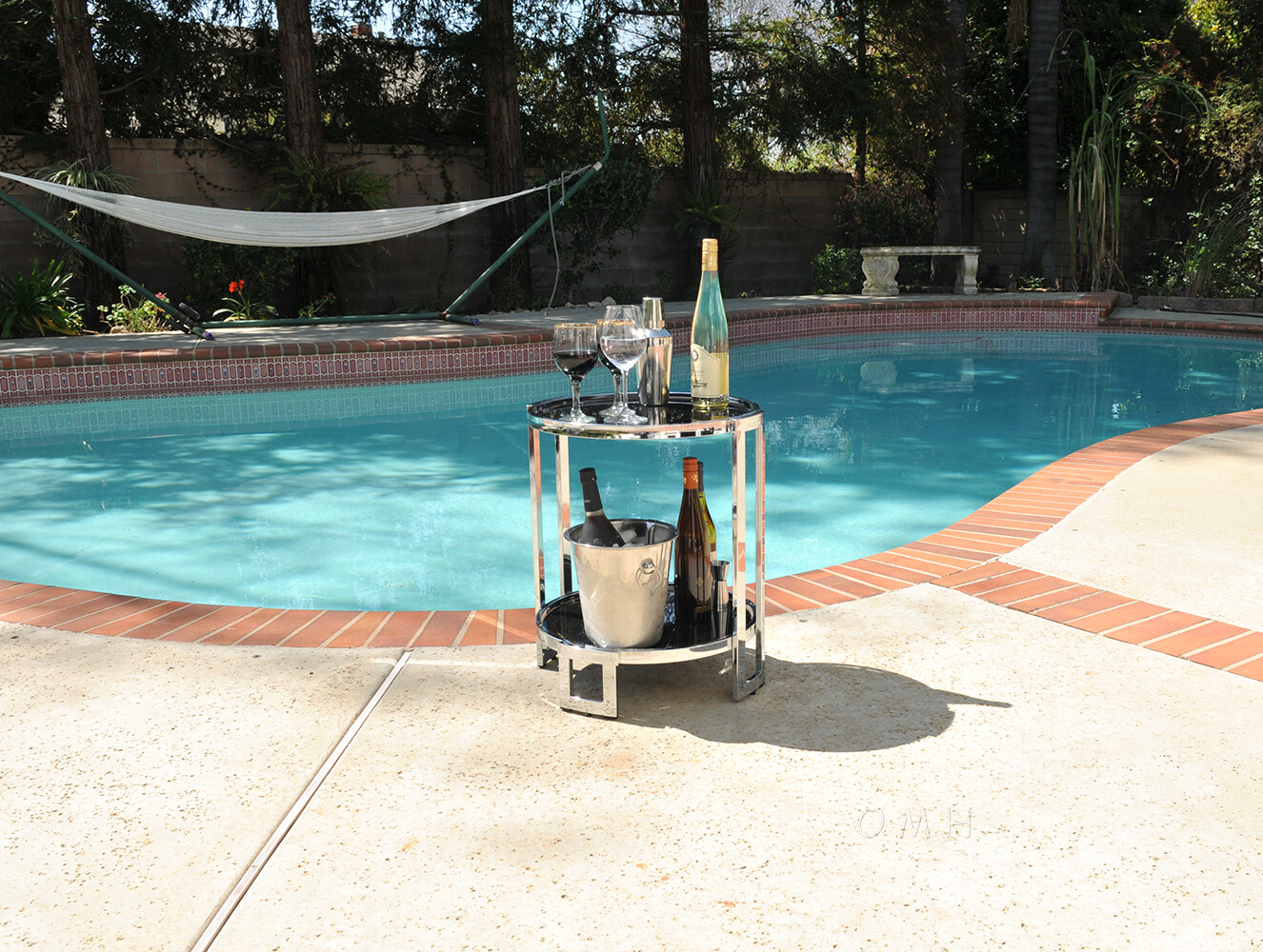 This made in Taiwan Anne Home round end table features a sleek sparkly and durable chrome frame. The upper and lower black tempered glass is nearly opaque, contrasts the chrome nicely, and adds a level of contemporary elegance to any space in your home. It is perfect for displaying a variety of beverages and wine accessories. The design is timeless, compact, and versatile. It can fit anywhere in your home or be used as a solo accent piece. Assembly is required.