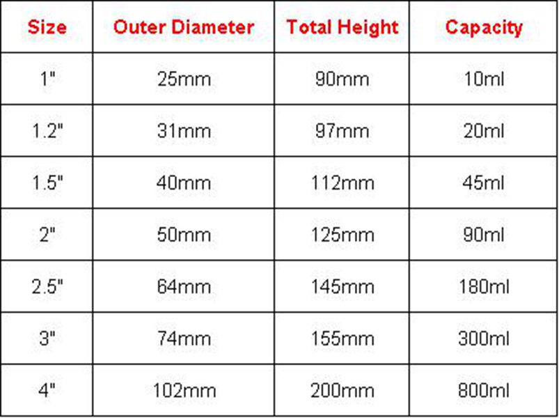 Outer Diameter:1", 1-1/4", 2", 2-1/2", 3", 4"