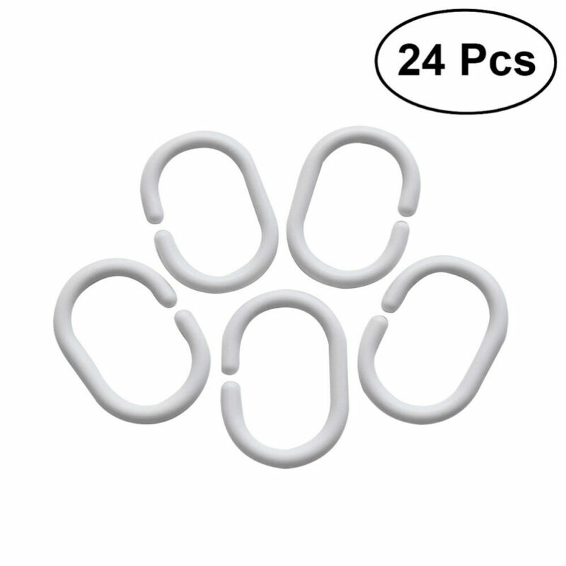 24Pcs White Plastic Shower Curtain Hooks Hangers C Rings