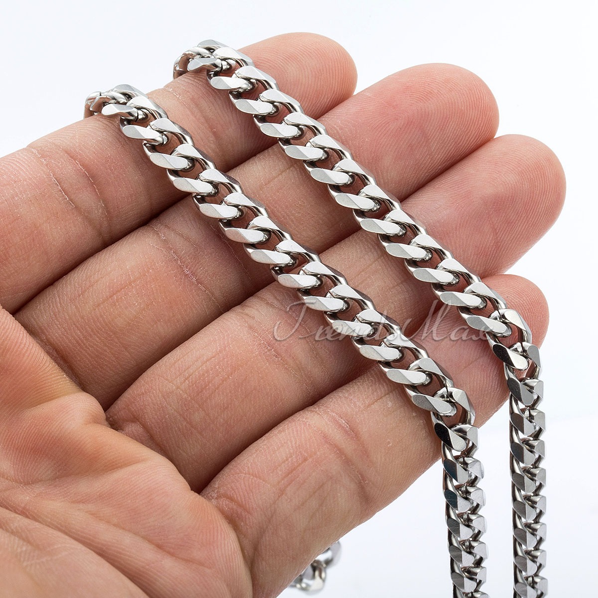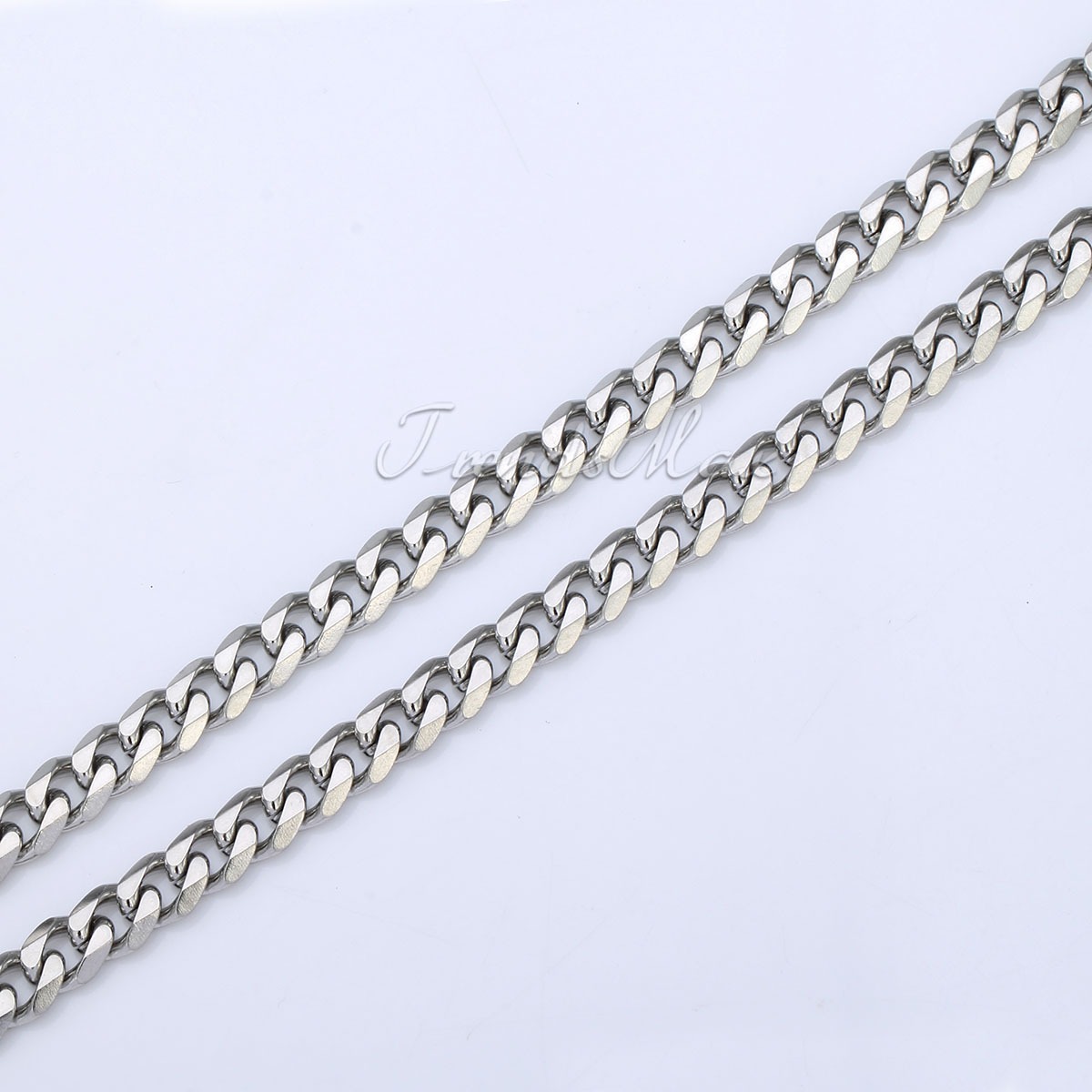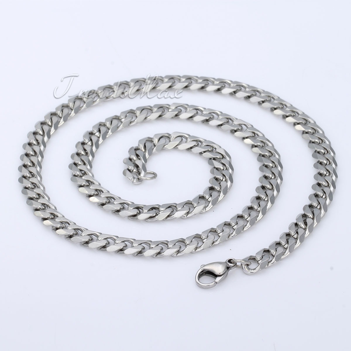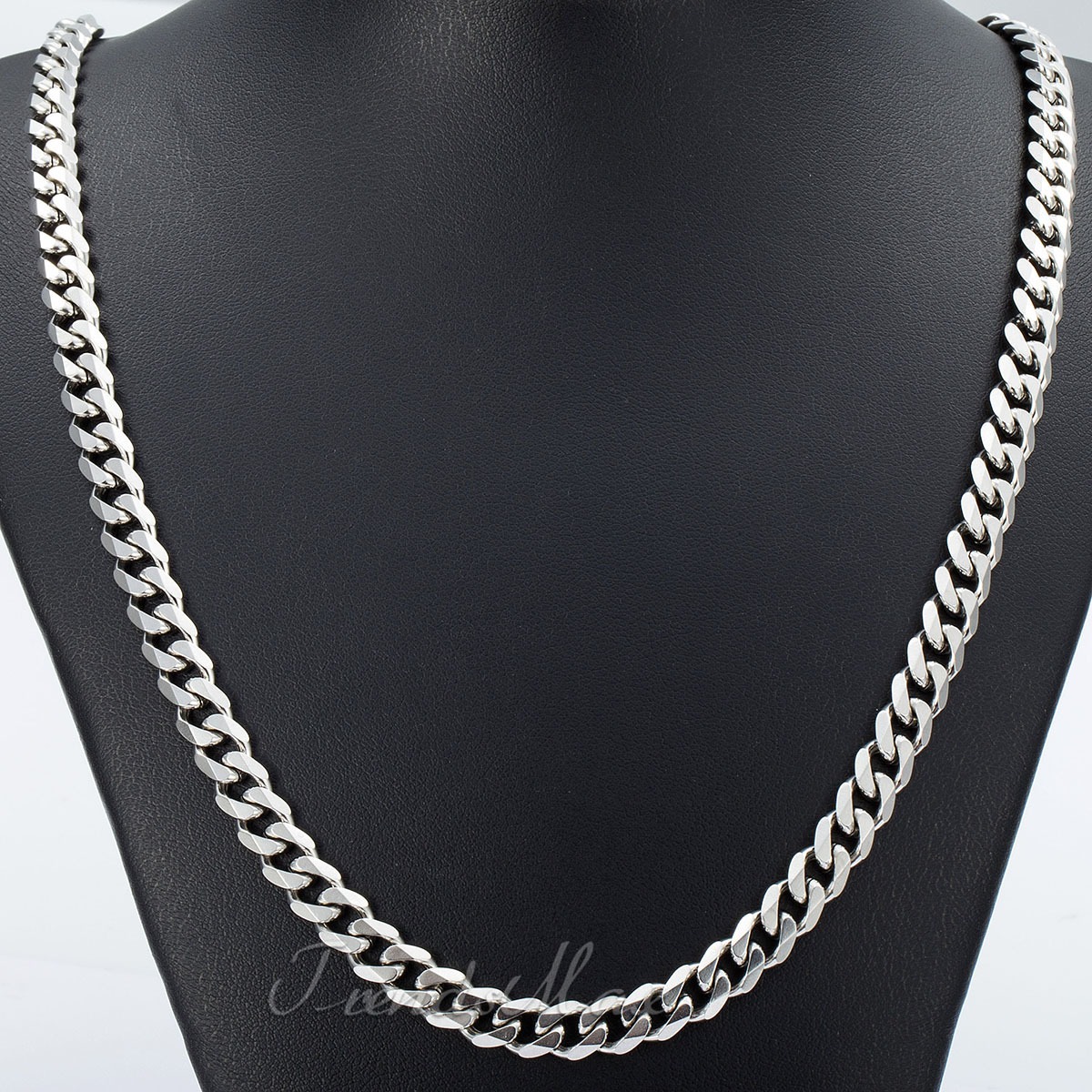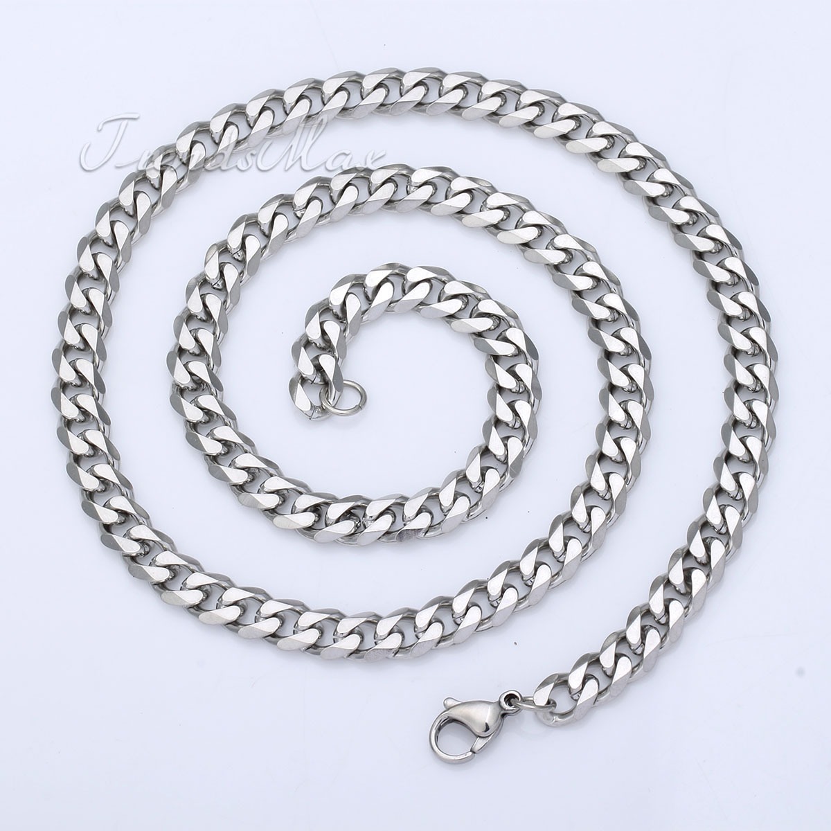 7mm Mens Boys Chain Curb Cuban Link Silver Tone Stainless Steel Necklace 16-36"