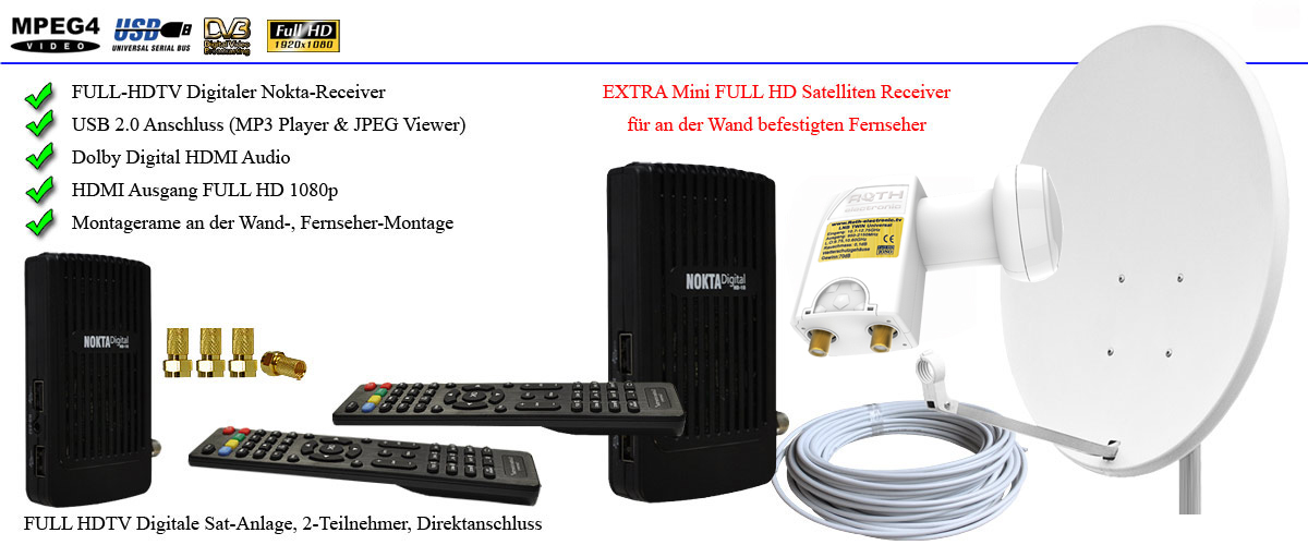 2-Teilnehmer mit 2x Mini Satelliten Receiver Nokta-HD-10