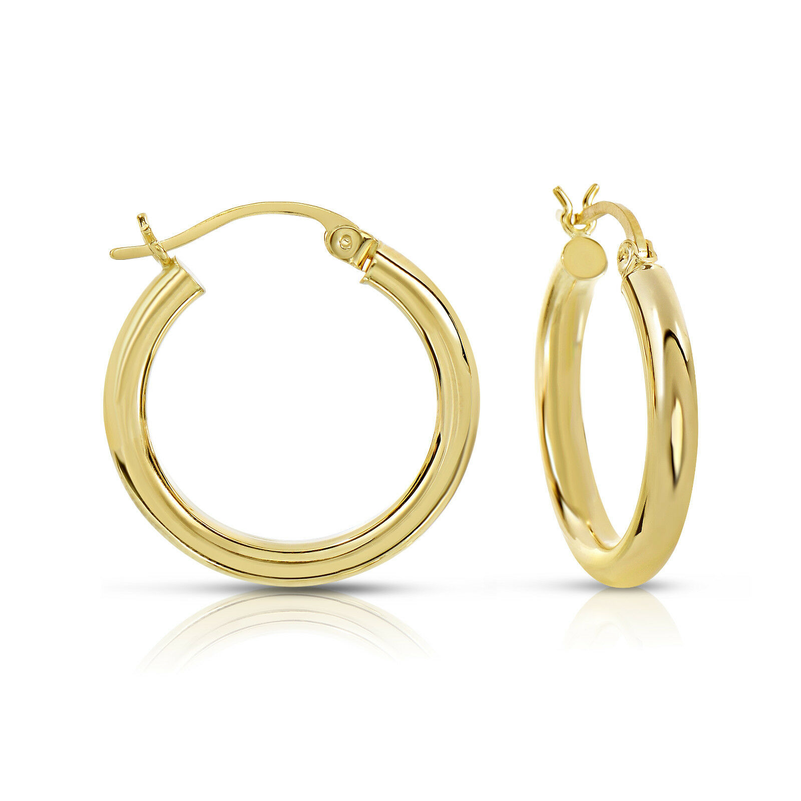 TILO Jewelry 14K Real Solid Yellow Gold Shiny Polished Chunky Round Hoop Earrings 1" Classic Round Chunky Large Hoop Ring Earrings Women, Girls, Unisex