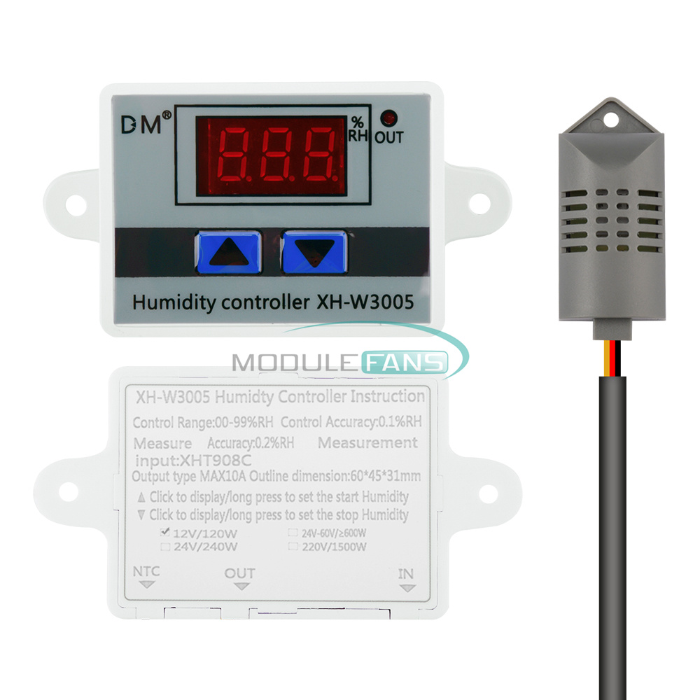 Digital LED Humidity Controller W3005 Hygrometer Switch Sensor 12V 24V 110-220V
