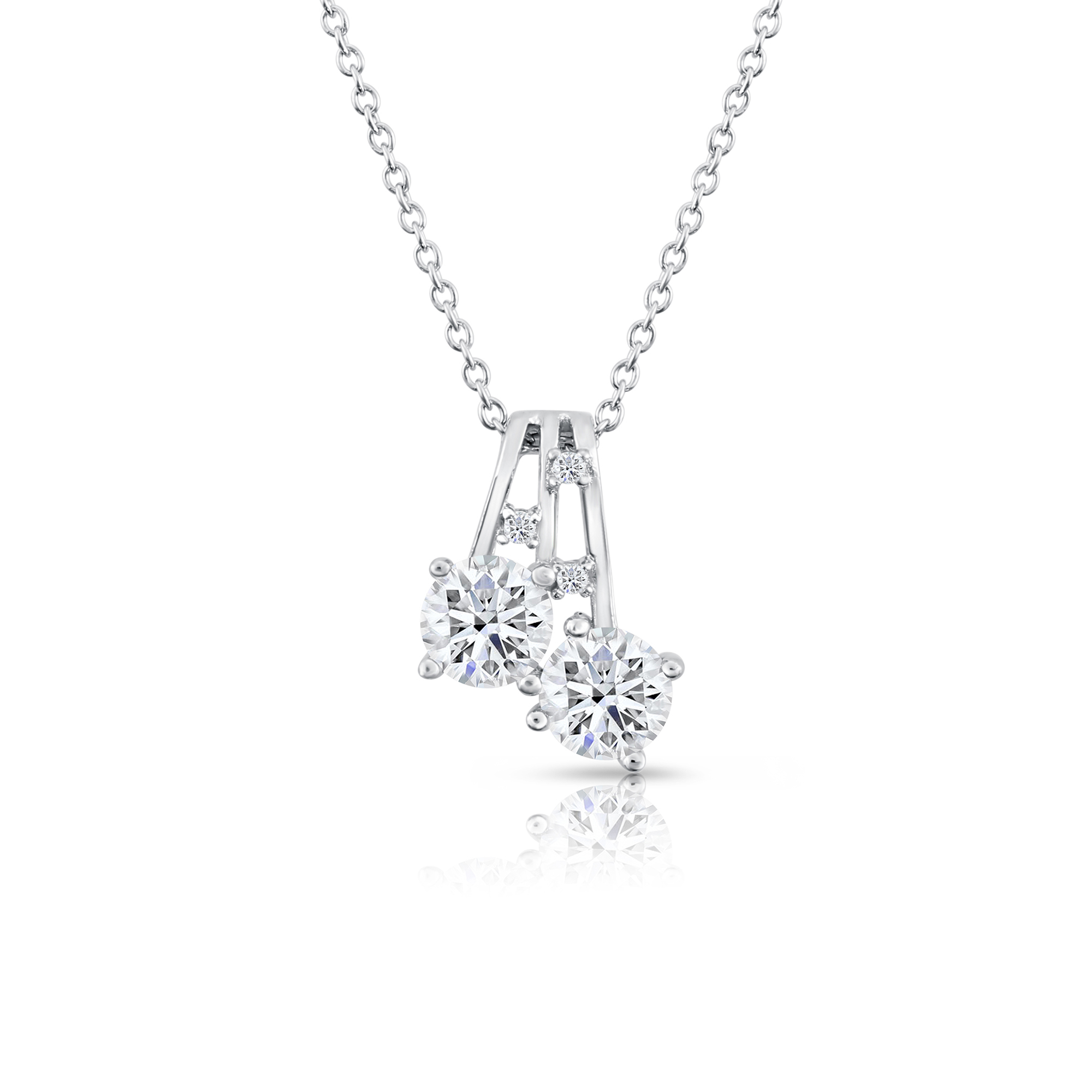 TILO Jewelry Solid 925 Sterling Silver Two Solitaire Round Brilliant Pendant Necklace with Simulated Diamond CZ Stones Love Friendship Minimalist Solitaire Brial Engagement Wedding Necklace Handmade Fine Jewelry Gift for Women, Girls, Unisex