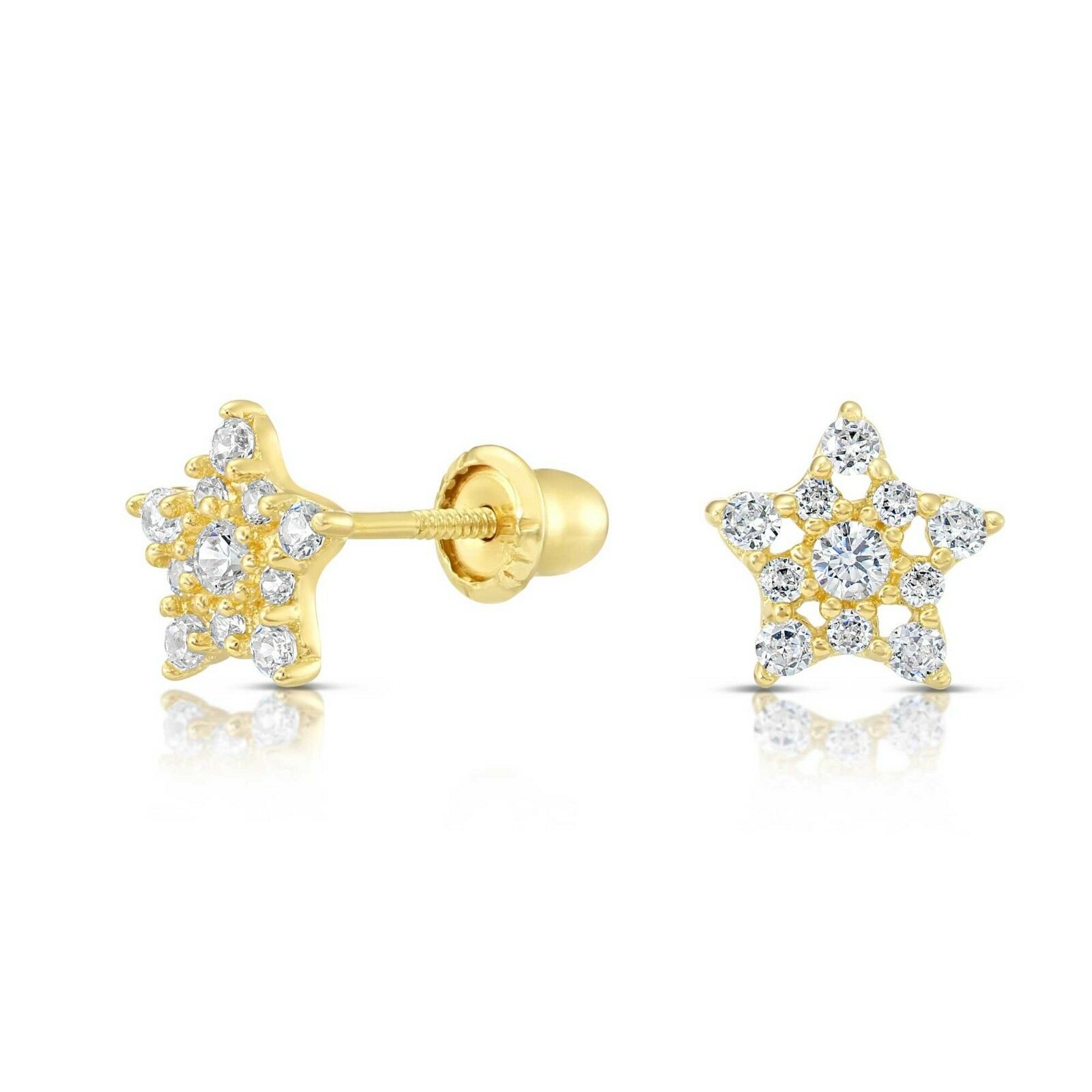TILO Jewelry 10K Real Solid Yellow Gold Baby Star Solitaire CZ Stud Earrings Minimalist 10K Screw-back Post Studs Women, Girls, Men, Unisex Kids