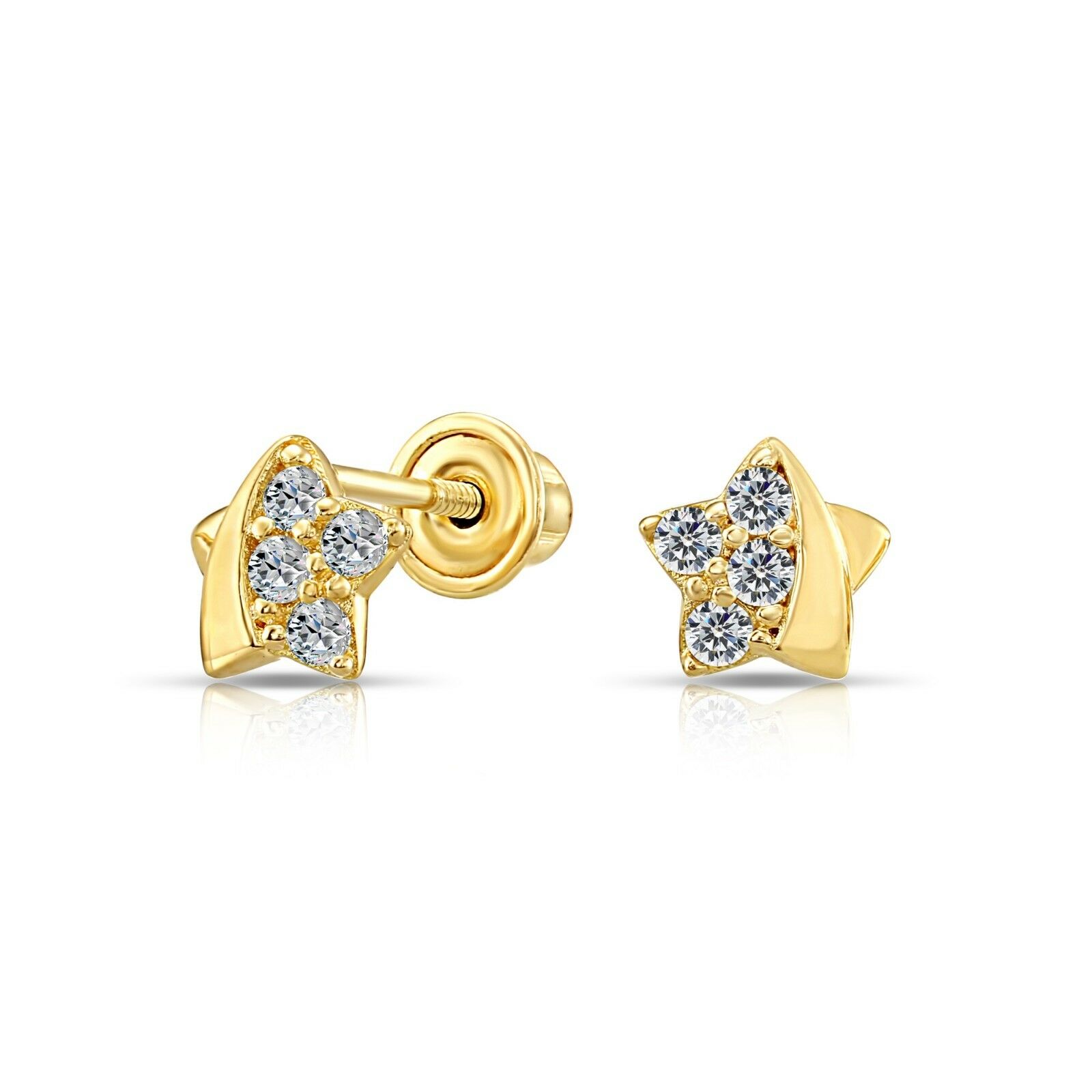 TILO Jewelry 10K Real Solid Yellow Gold Baby Shooting Star CZ Stud Earrings Minimalist 10K Screw-back Post Studs Women, Girls, Men, Unisex Kids