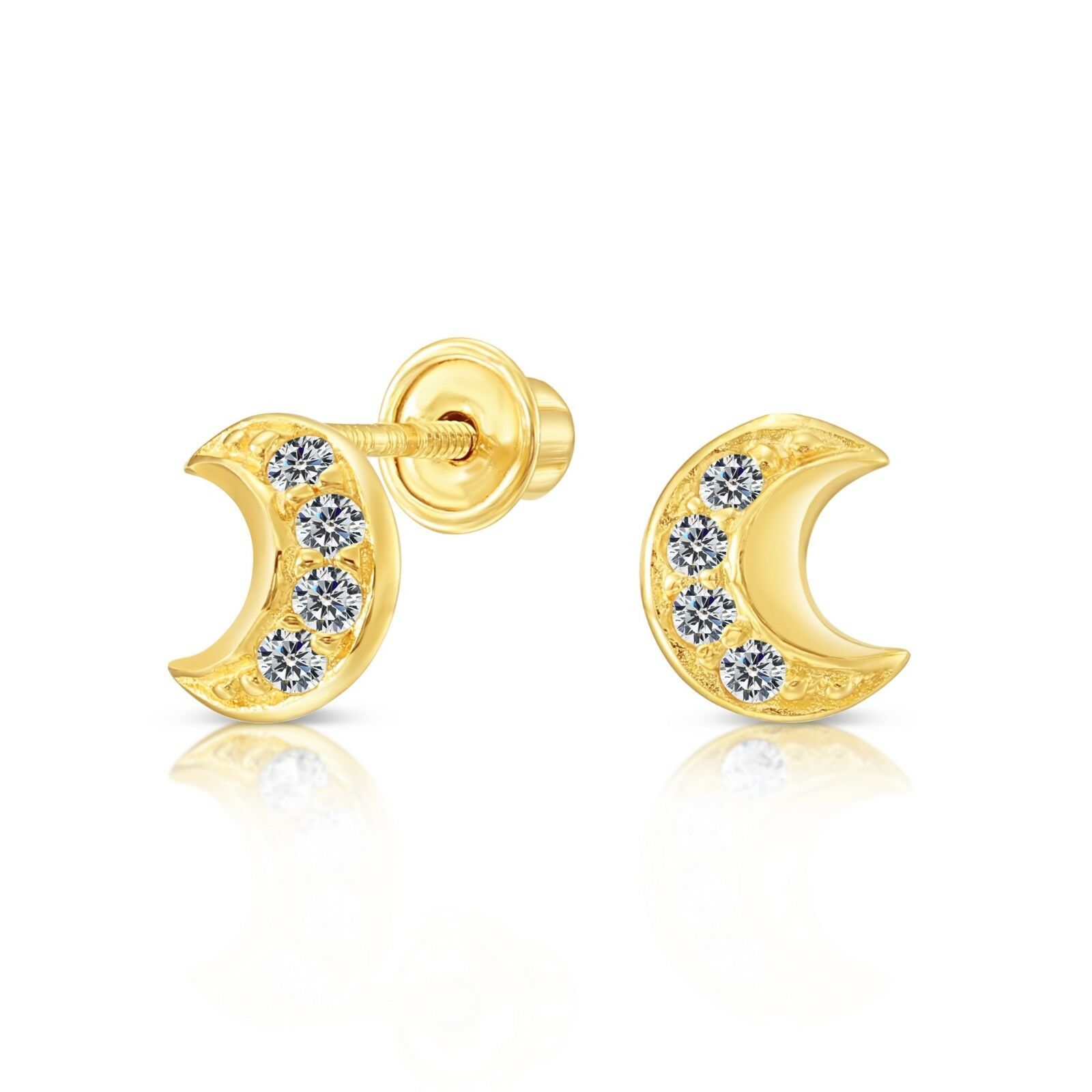 TILO Jewelry 10K Real Solid Yellow Gold Crescent Moon CZ Stud Earrings Minimalist 10K Screw-back Post Studs Women, Girls, Men, Unisex Kids