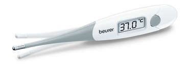 The Beurer FT15/1 thermometer has a short measurement time of around 10 seconds. An acoustic signal sounds after the end of the measurement for easy and precise measuring, and a battery and protective case are included.