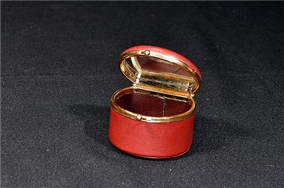 This is a luxury small Ghurka Jewelry Box in vintage chestnut leather. This case is extremely rare as Ghurka made only a few of them in Spain and as soon as they introduced them in 2003, they were all sold out! The case makes a perfect luxury present. This is a hard wooden box with a leather cover inside and out. There is a mirror inside the lid. The case is secured by 24K gold plated brass kiss lock closure. The jewelry box is in excellent condition and we rate it 9.8 out of perfect 10! This particular item does not show up online in new condition often, so this is the opportunity to make it yours!