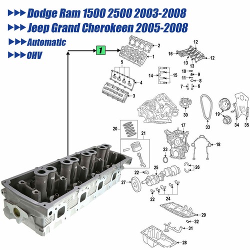 Cylinder Head Passenger Side for Dodge Ram 1500 Jeep Grand Cherokee WH V8 5.7L