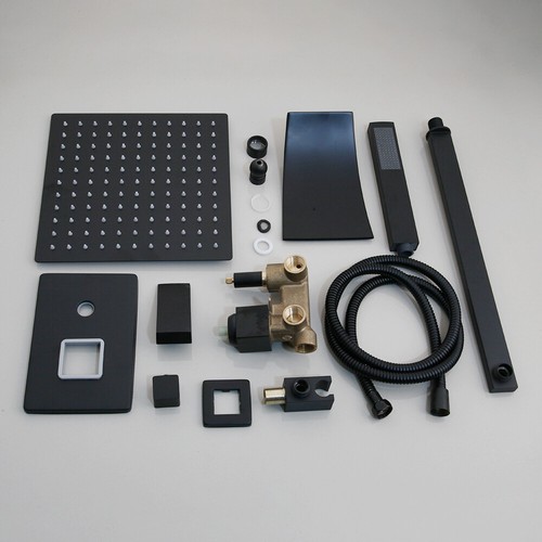 8"Shower Faucet Set Matte Black Square Rain Shower Heads Waterfall Tub Mixer Tap