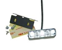 Universelle, winzige LED-Kennzeichenbeleuchtung zum Kleben oder Schrauben. Beide Haltevarianten sind im Lieferumfang enthalten. Je nach Gegebenheiten kann es notwendig sein den Strahler zu kleben oder mittels Halterung zu befestigen, daher werden beide Varianten mitgeliefert. Dank E-Prüfzeichen ist keine Eintragung notwendig. Der Anschluss erfolgt über ein Plus und ein Minus Kabel.