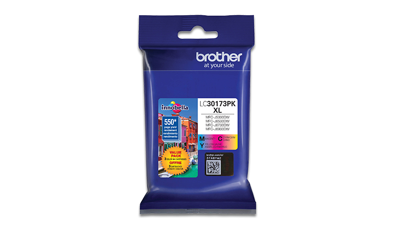Overview3 Pieces of High-Yield Ink Cartridge (Cyan, Magenta, Yellow) that approximately yield 550 pages each. Manufactured by Brother. |