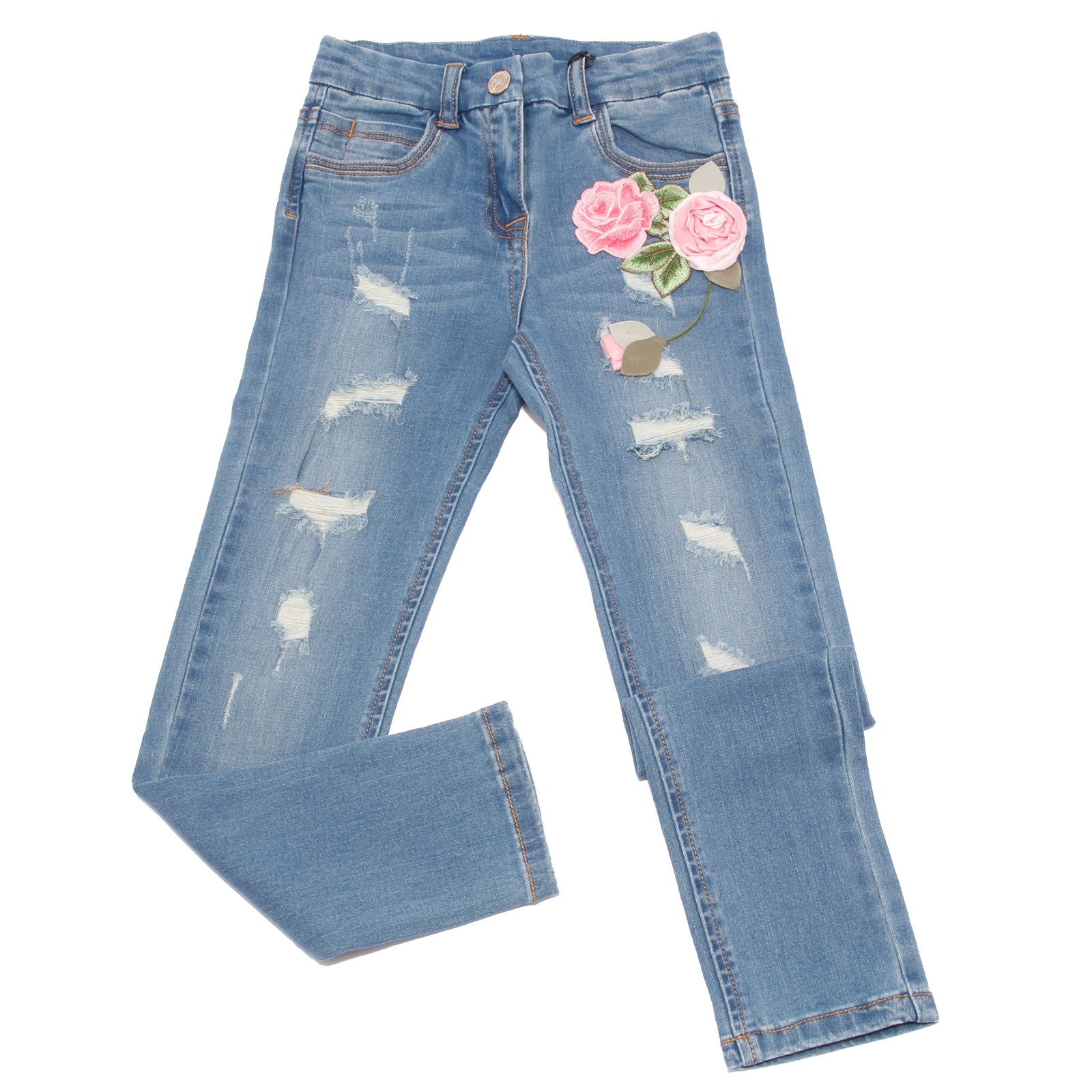 1481W jeans bimba MONNALISA blue denim embroidered trouser kid