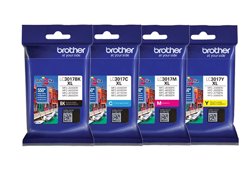 OverviewThis Brother High Yield Ink Cartridge Set contains four (4) color compatible cartridges (Black LC3017BK, Cyan LC3017C, Magenta LC3017M, Yellow LC3017Y) that has been designed to work with a range of Brother printer(s). Each color will approximately yield up to 550 pages. Manufactured by Brother |