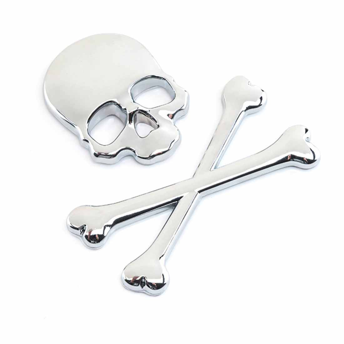 3D Skull Head Bone Emblem Car Motorcycle Fuel Tank Stickers Badge Decal Silver