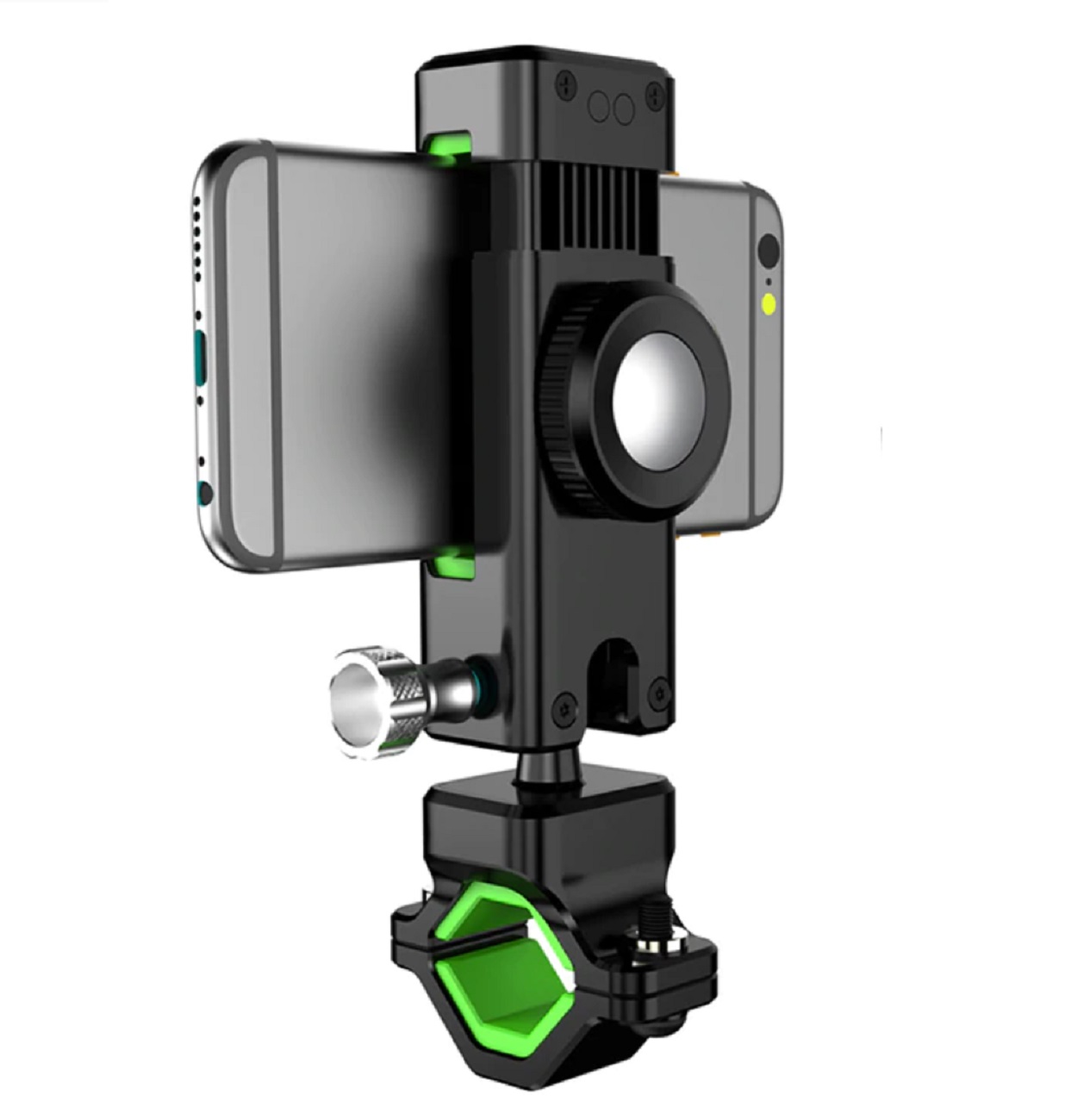 Halter für Smartphones, GPS Geräte etc. mit Kugelgelenk zur 360 Grad Verstellbarkeit. Ideal zur Anbringung am Griff- oder Schiebelements des Golf Trolleys und zur Nutzung von GPS Apps während der Runde.