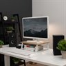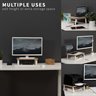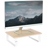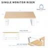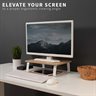 Enjoy the benefits of comfortable viewing angles and increased efficiency with the Light Wood / White Monitor Riser (STAND-V000WS) from VIVO! Win back valuable desk space by elevating your devices to an ergonomic viewing height with this sturdy and space efficient stand. In addition to holding a computer monitor, it can also be used to elevate a laptop, small TV, and more! Designed with user-geared features such as solid steel footing for stability, a smooth wooden surface complementing any office environment, and anti-slip padding for desk surface protection, this stand was built to perform. All hardware is provided for easy assembly to get your screen elevated in no time!