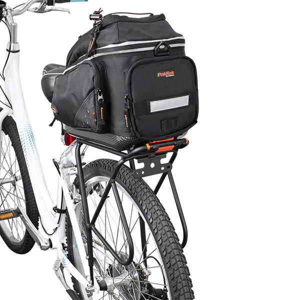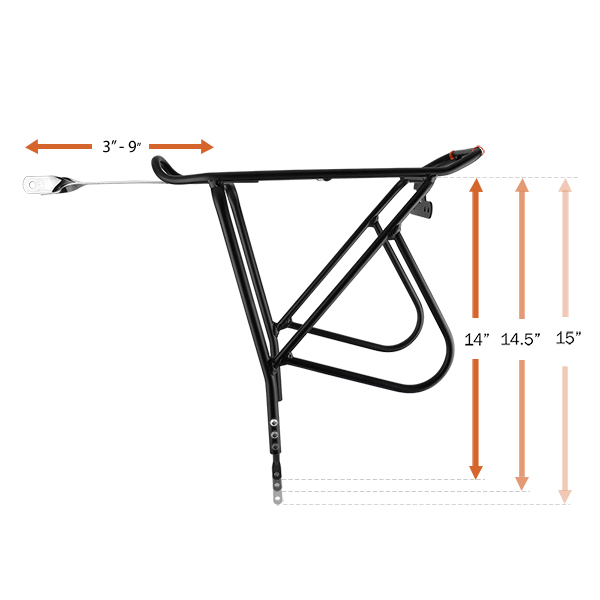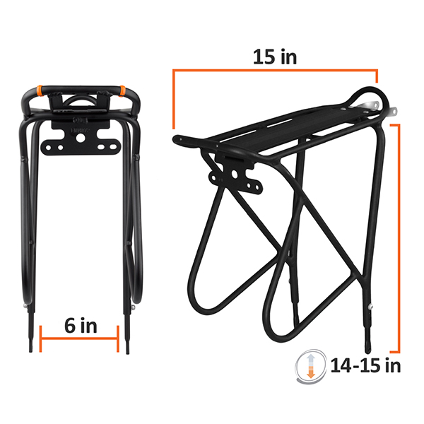 The highlight of this carrier rack is the quick clip-on bag mount system. This design allows touring cyclists easily remove bag in one second. This carrier rack is made of durable TIG-welded, heat-treated, anodized aluminum. This material is usually used for the bicycle frames and components, so it is as strong as your bicycle. The high quality material and manufacturing process reinforces it for extra strength. Additionally, the anodized aluminum is corrosion resistance and able to retain dye.