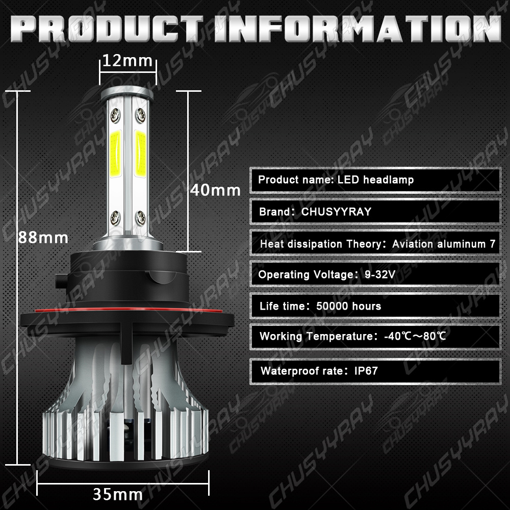 -Bulb Size: 4Sides H13 (High/Low Beam)+ 5202 (fog light)