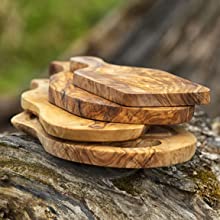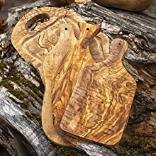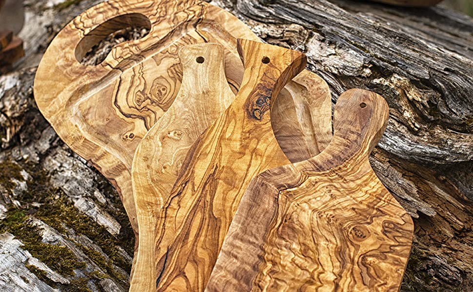 Handcrafted by professional craftsman, these stunning pieces are made from genuine olive wood and each feature a thick cutting surface, exclusive pattern and finish, and original style that’s both captivating and functional.