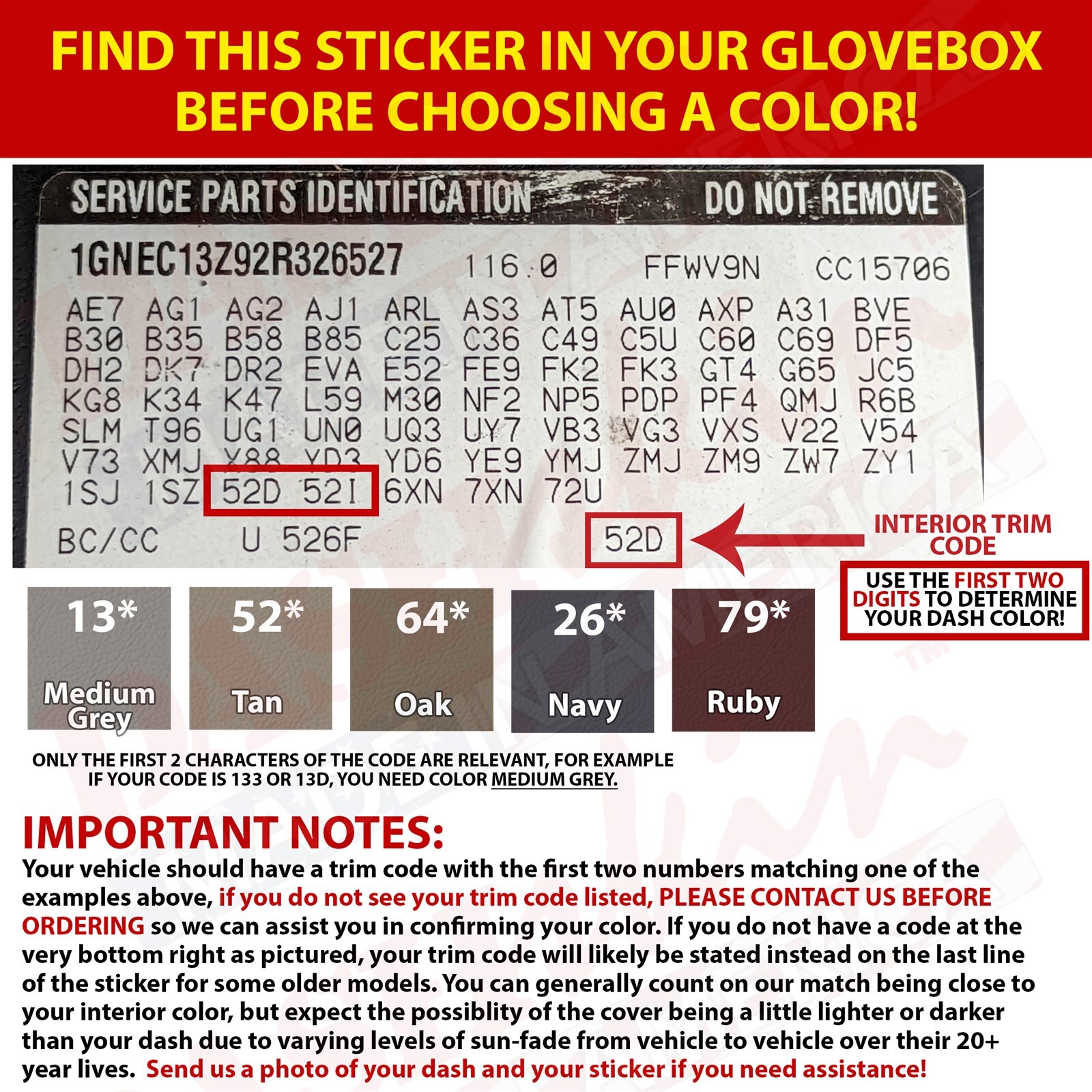 - OE/OEM Part Number Dashboard, Board, Dashcap, Cap, Panel, Overlay, Pad, direct, replacement, mat, cover, lid, replace for:, repair, vinyl, top, dashtop, 2 door, 4 door, 95, 96, 1995, 1996, Chevy, Chevrolet, GMC, C1500, C2500, C3500, K1500, K2500, K2500, Silverado, Sierra, Tahoe, Suburban, Yukon, 4wd, 2wd, 4x4, 4x2