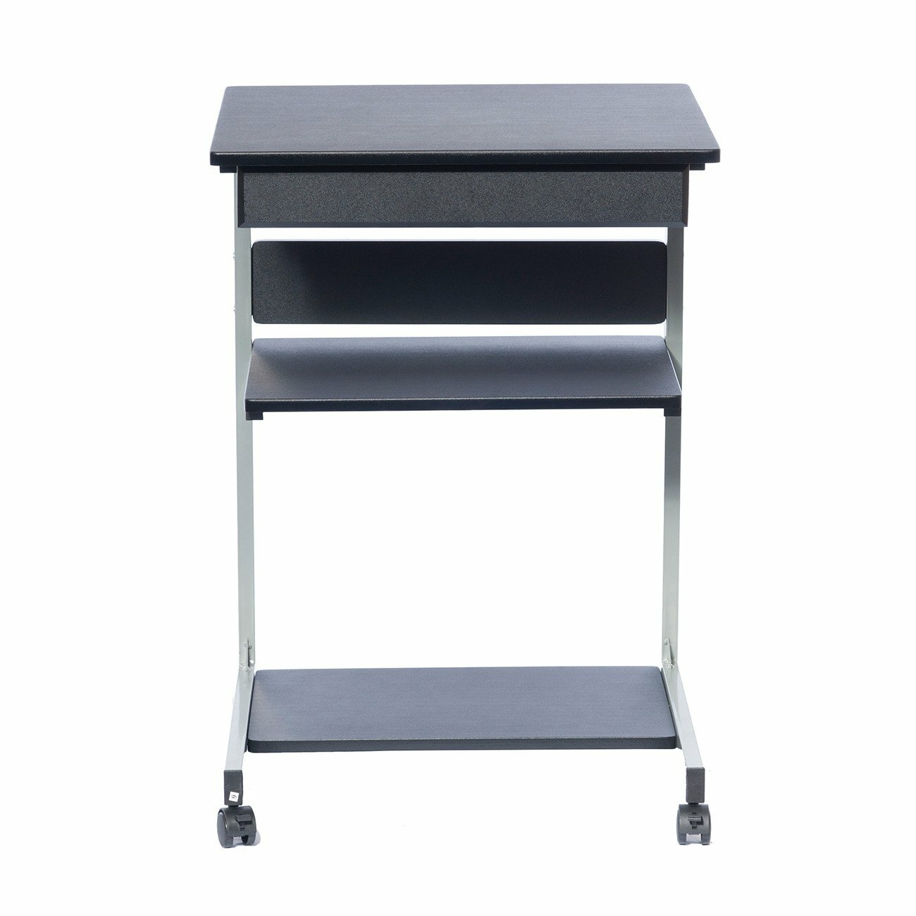 This Techni Mobili Rolling Laptop Holder with its compact frame and locking caster wheels saves space in-home or office. Panels are made of MDF panels with a moisture laminate veneer in graphite finish atop a scratch-resistant powder-coated steel frame. Two of the four non-marking nylon casters include locking mechanisms. The Techni Mobili Rolling Laptop Desk with Storage works with you to get it all done.