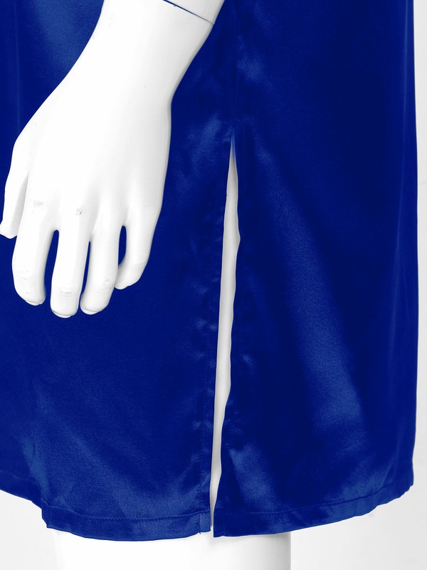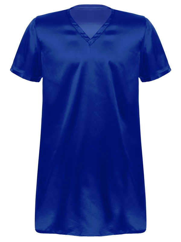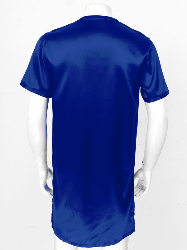 Men Women Satin Nightgown V Neck Short Sleeve Sleepwear Nightclothes Homewear Sides Split Nightwear.