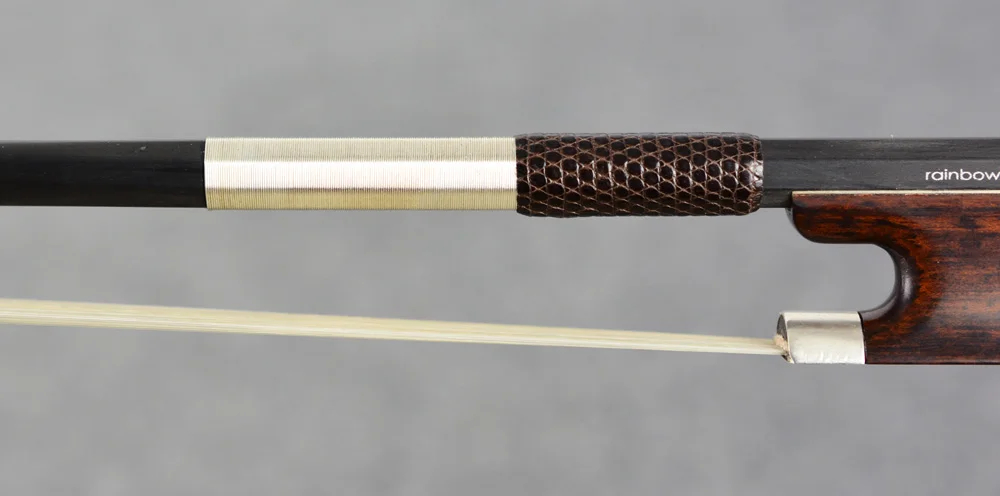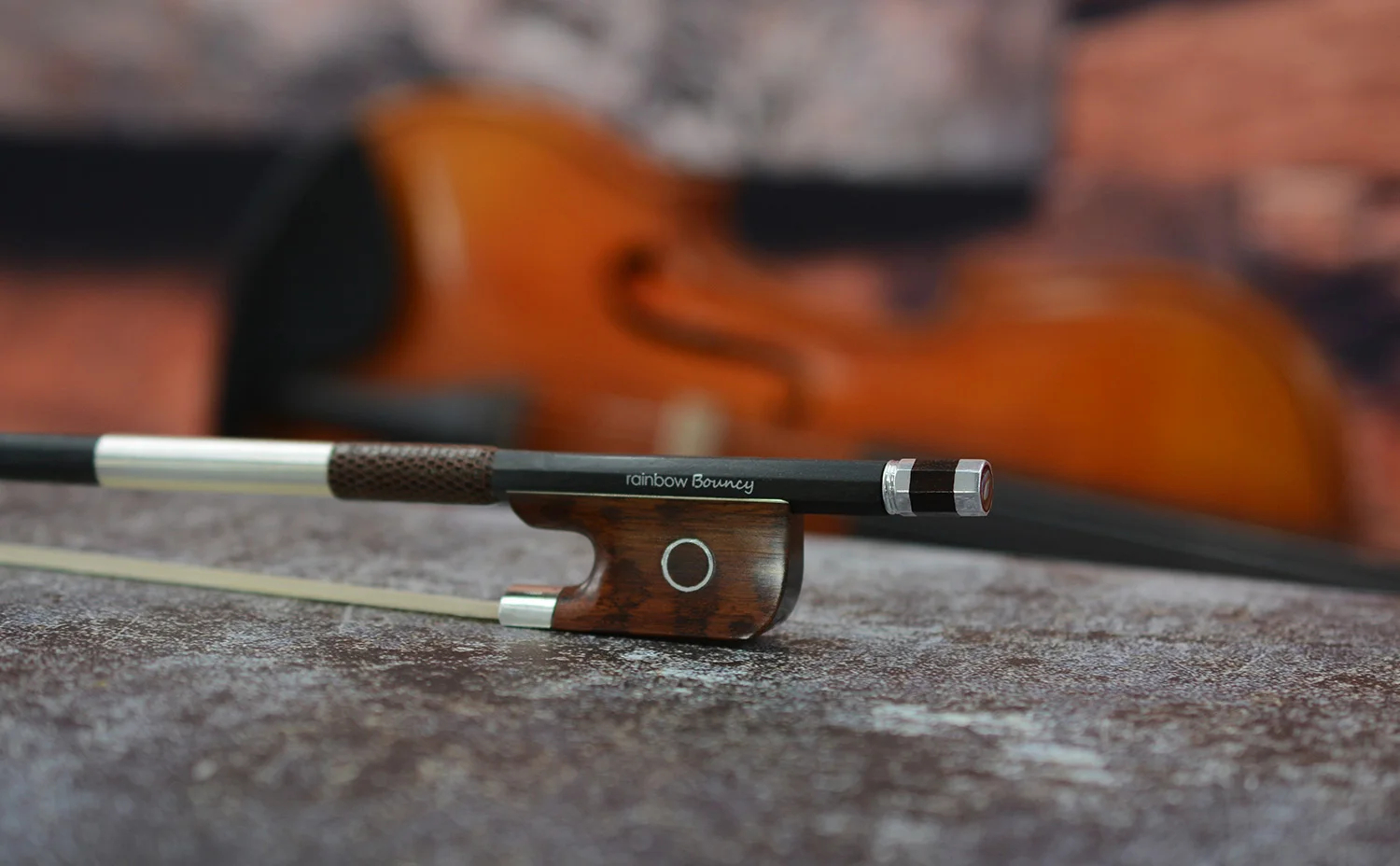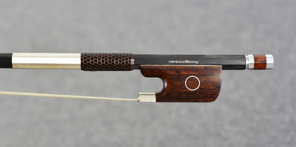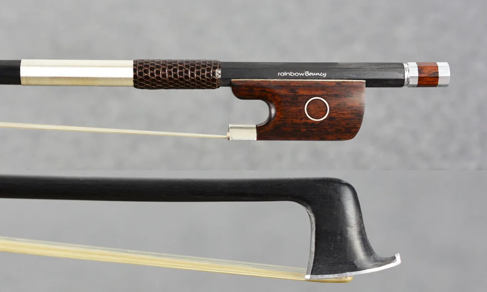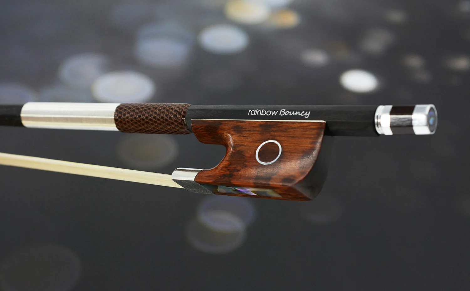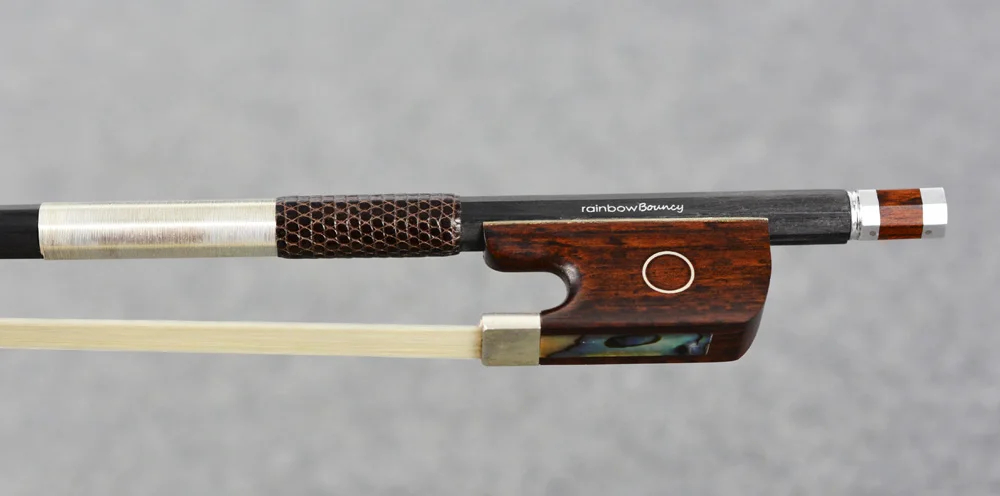 As a lightweight bow (less than 60g), its stick is made of pure carbon fiber for more clear tone and faster response. Its stick looks like a little rough as there is no "paint" on the surface. In fact, it requires more time and efforts from our master bowmaker even than the same level wooden bow. You can see its carved and polished trace clearly through its pictures - the beauty of PURE carbon fiber. Many customers believe that carbon fiber bow is only suitable for beginners to practise. However, we sell hundreds of Rainbow Bouncy to players and most of them keep the bow as their favorite bow to play in concerts. It has received many good feedback and is highly recommended by many musicians. Rainbow Bouncy has the advantages of both carbon fiber bow and wooden bow. Surprising performance and elegant looking. Once you have a try, you will love it.