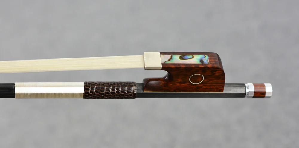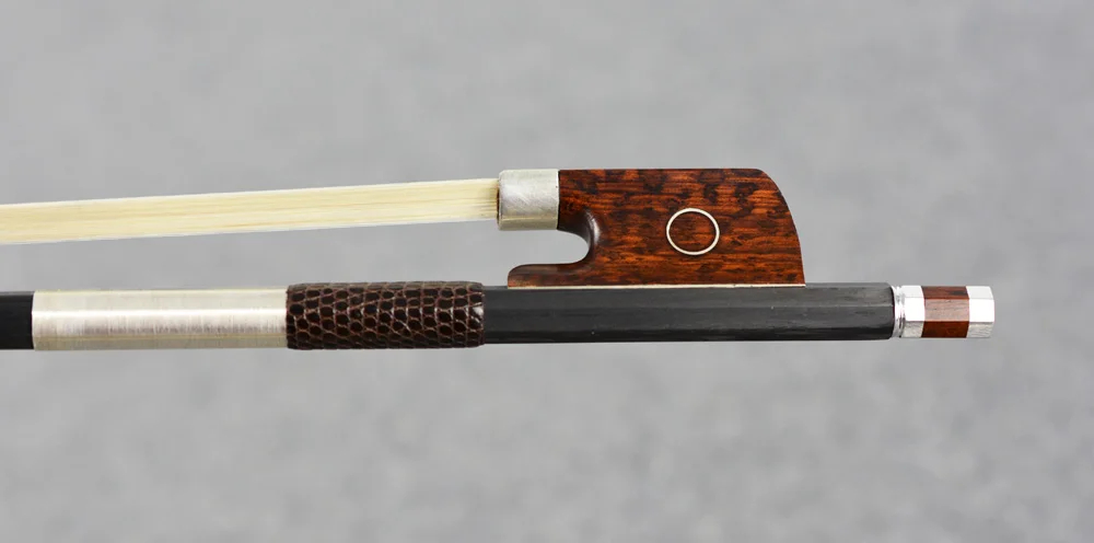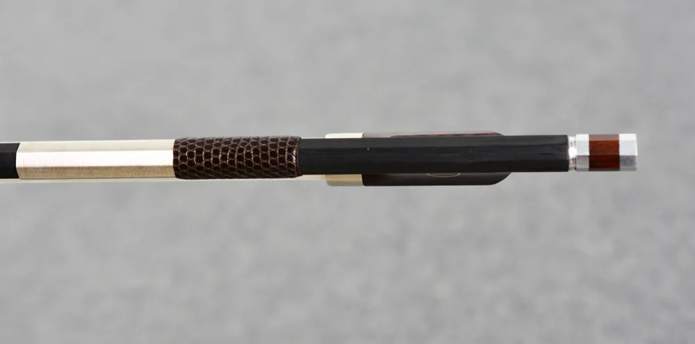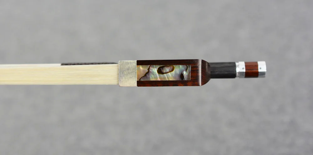 The horsehair is from Mongolia at top level in natural (non-bleached) condition. The frog and screw are made of high-density ebony and pure silver. The slide is well-selected colorful mother of pearl, comfortable and textured leather grip, graceful special-designed winding as you can see from the actual pictures. Hope you can get the beauty and subtlety of this bow.
